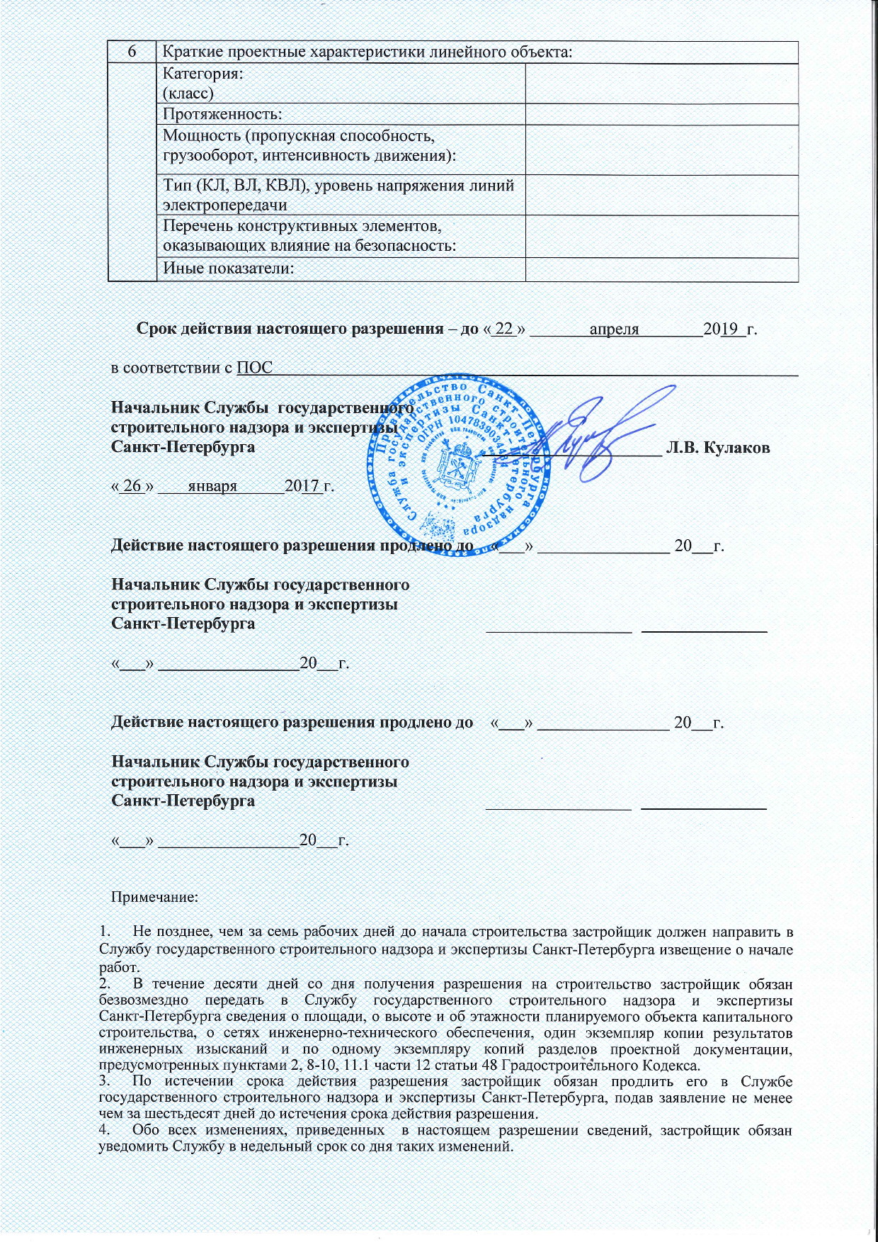 - разрешение на строительство - от 26.01.2017 со сроком действия до 22.04.2019