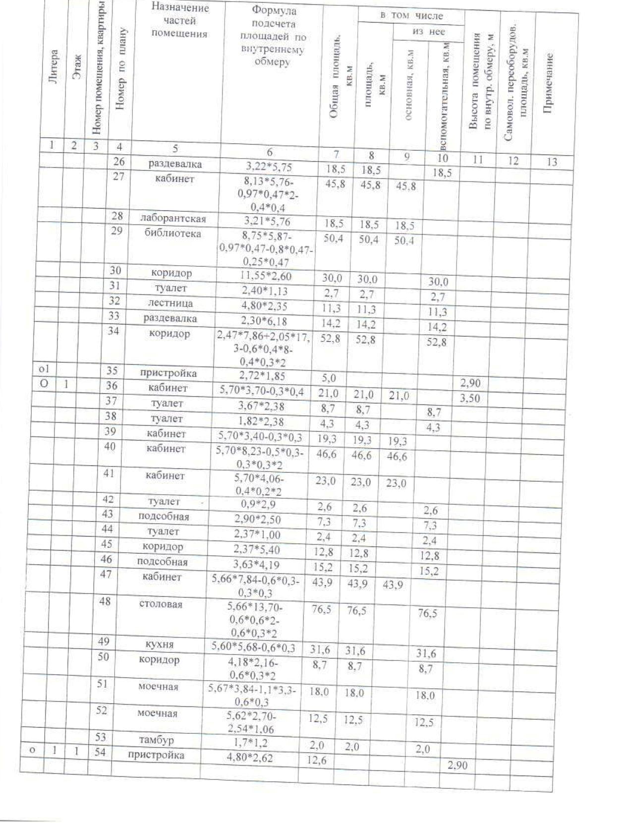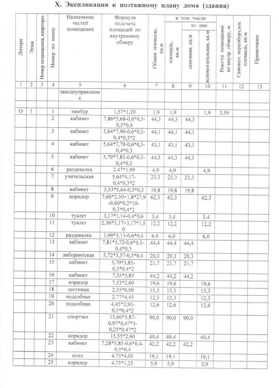 Характеристики этажей здания