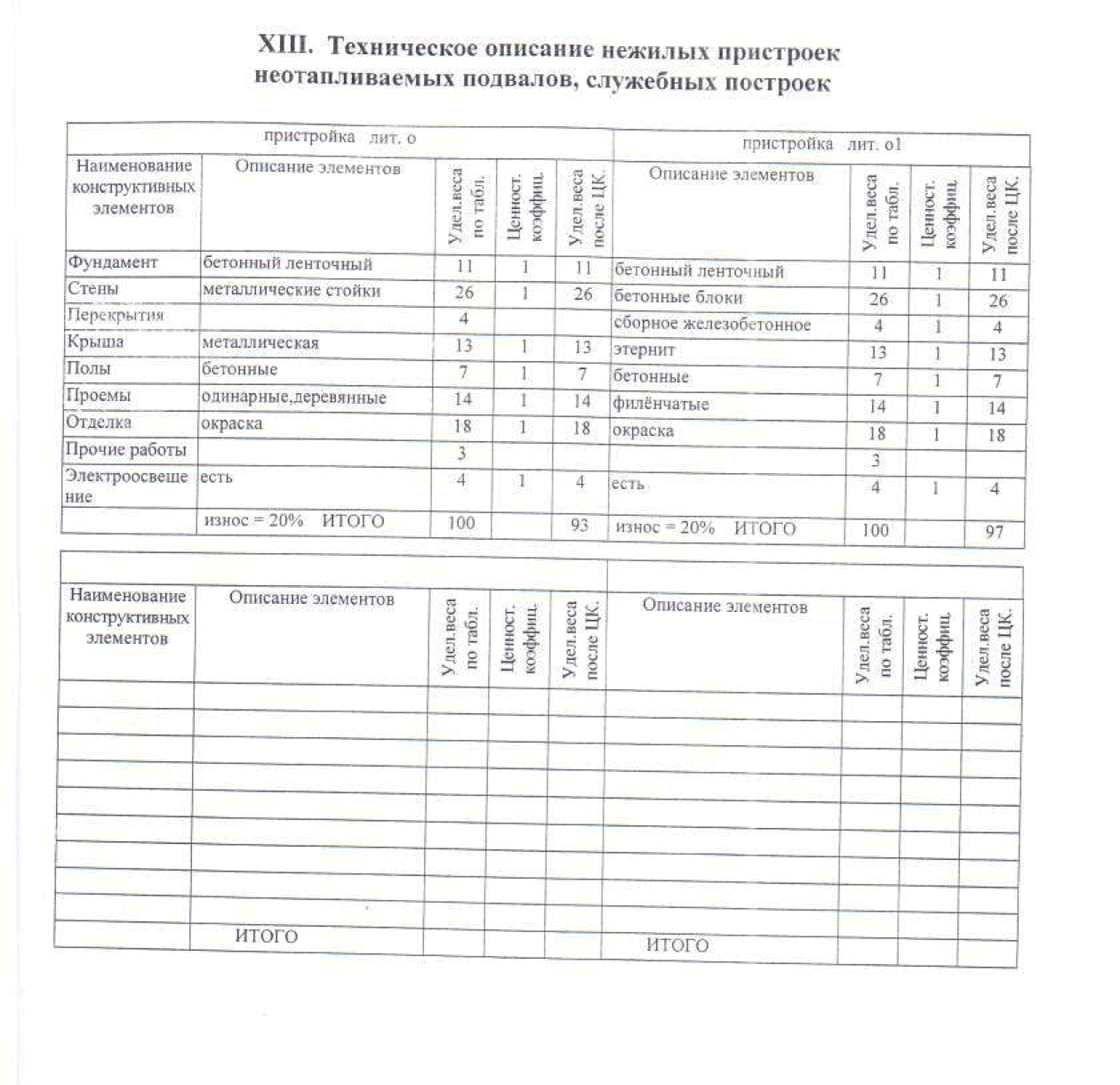 Технические характеристики пристроек