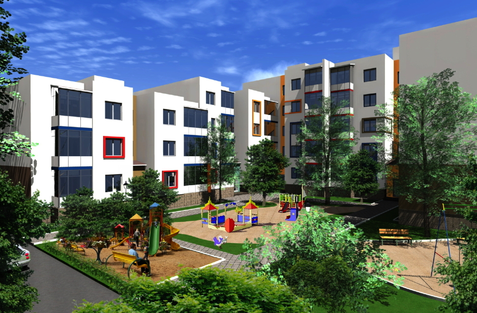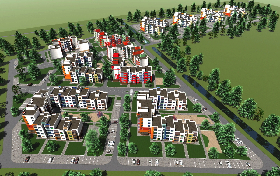 - На земельном участке площадью 17 820 м2 проектом предусматривается строительство многоквартирного малоэтажного жилого комплекса, состоящего из 2 домов переменной этажности (от 3 до 5 этажей).