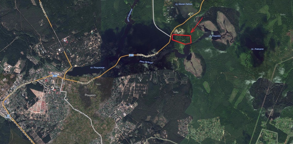 Участок лесфонда под базу отдыха на берегу реки Нижняя у посёлка Рощино
