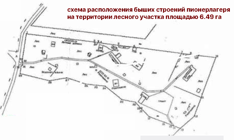 Большая часть корпусов и хозпостроек бывшего пионерлагеря в полуразрушенном состоянии (практически руины). Подлежат сносу. Реконструировать можно 3-4 здания (при необходимости).