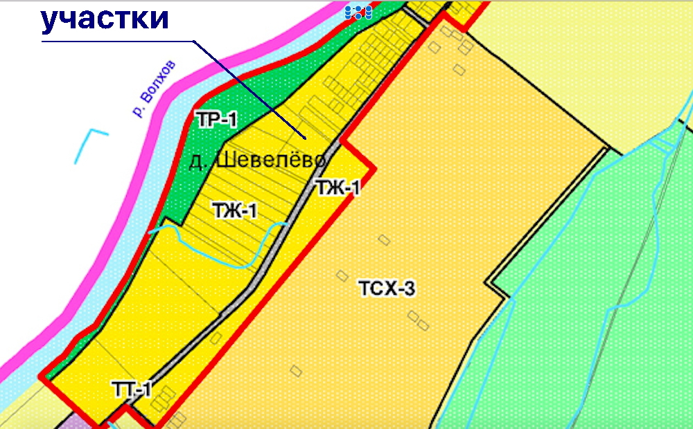 - Участки в черте населённого пункта – большой деревни Шевелёво, расположенной на правом высоком берегу реки Волхов.