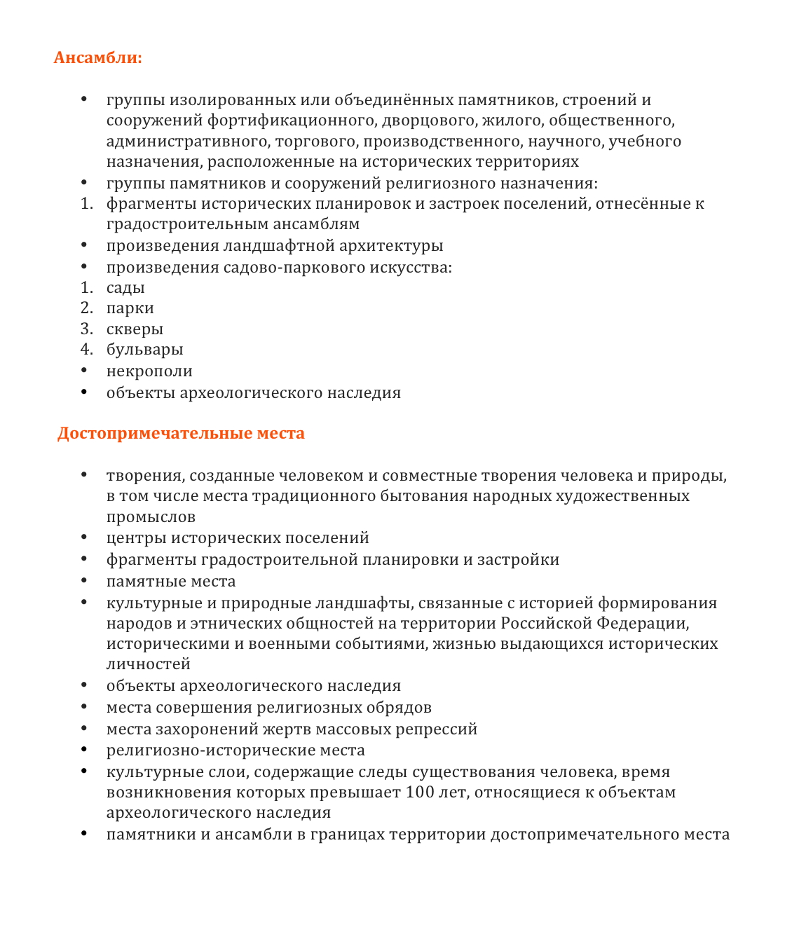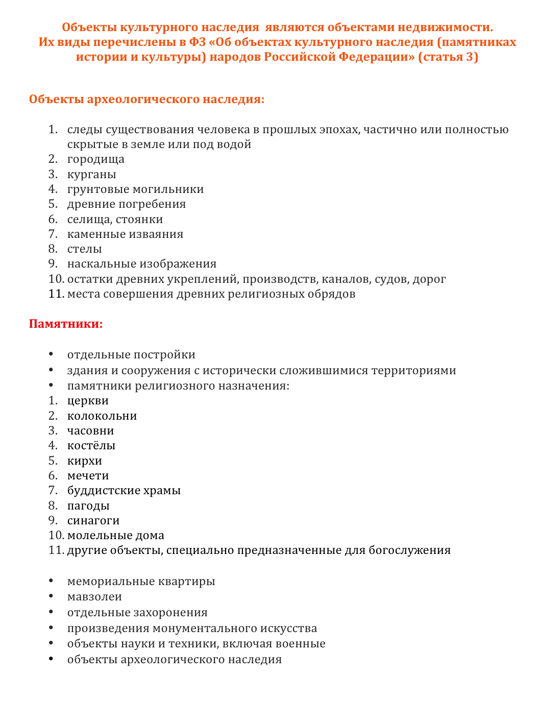 Весь перечень видов объектов культурного наследия представлен в разделе «документы» в «подвале» этой страницы.