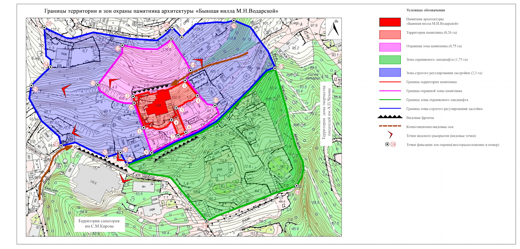 Зона охраны и защитная зона памятника – это 2 из 28 зон с особыми условиями использования территорий (ЗОУИТ). В составе ЗОУИТ присутствует также охранная зона особо охраняемой природной территории объектов, относящихся к памятникам культуры, оценённым по природным критериям. В их числе: