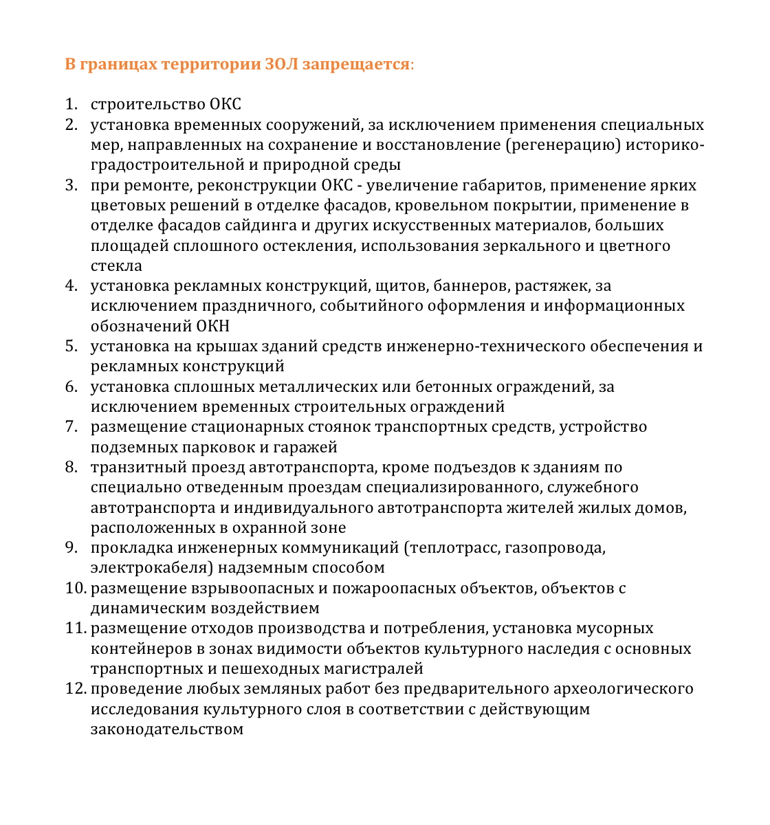 - ограничение в использовании строительных материалов, применении цветовых решений с рекомендацией тех материалов и решений, что соответствуют облику ОКН
