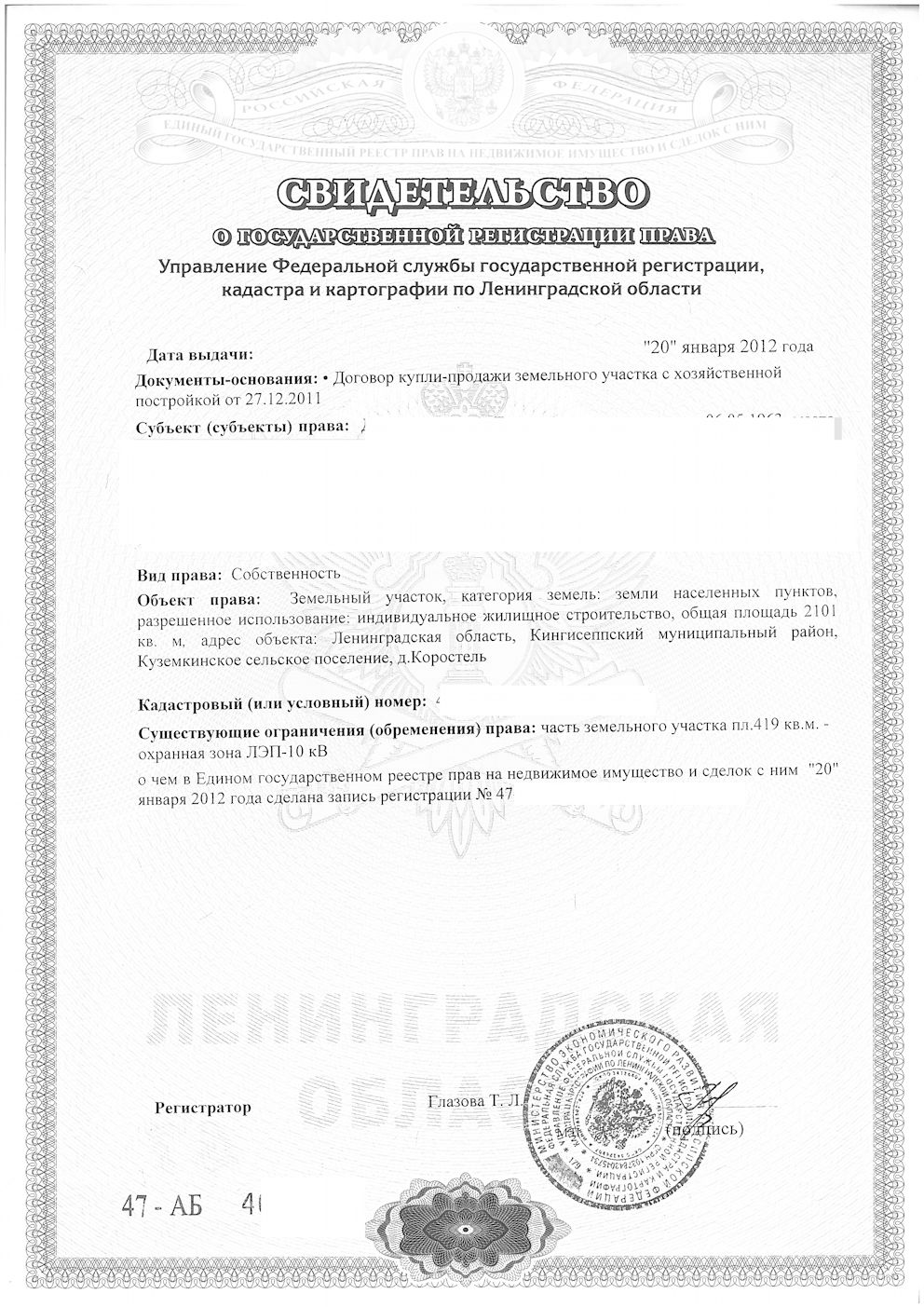 участок площадью 2 101 м2 – 400 тыс.руб.