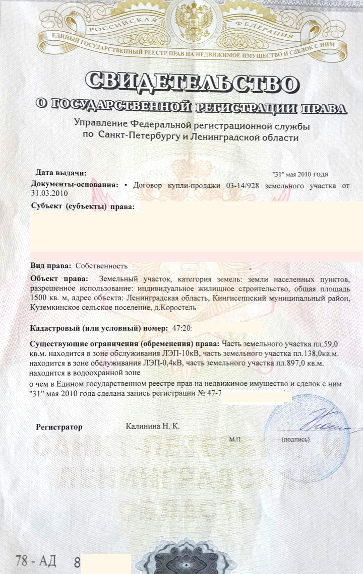 участок площадью 1 500 м2 – 400 тыс.руб.