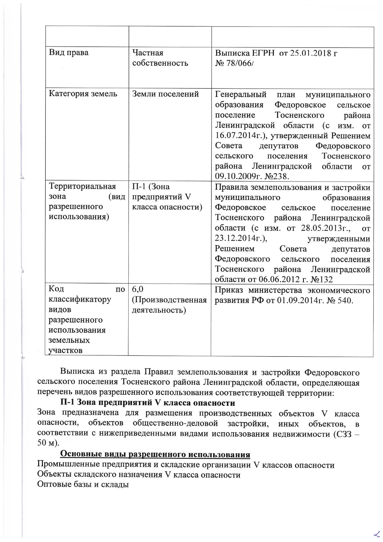 В соответствии с ПЗЗ МО Фёдоровское сельское поселение участок относится к территориальной зоне П-1.