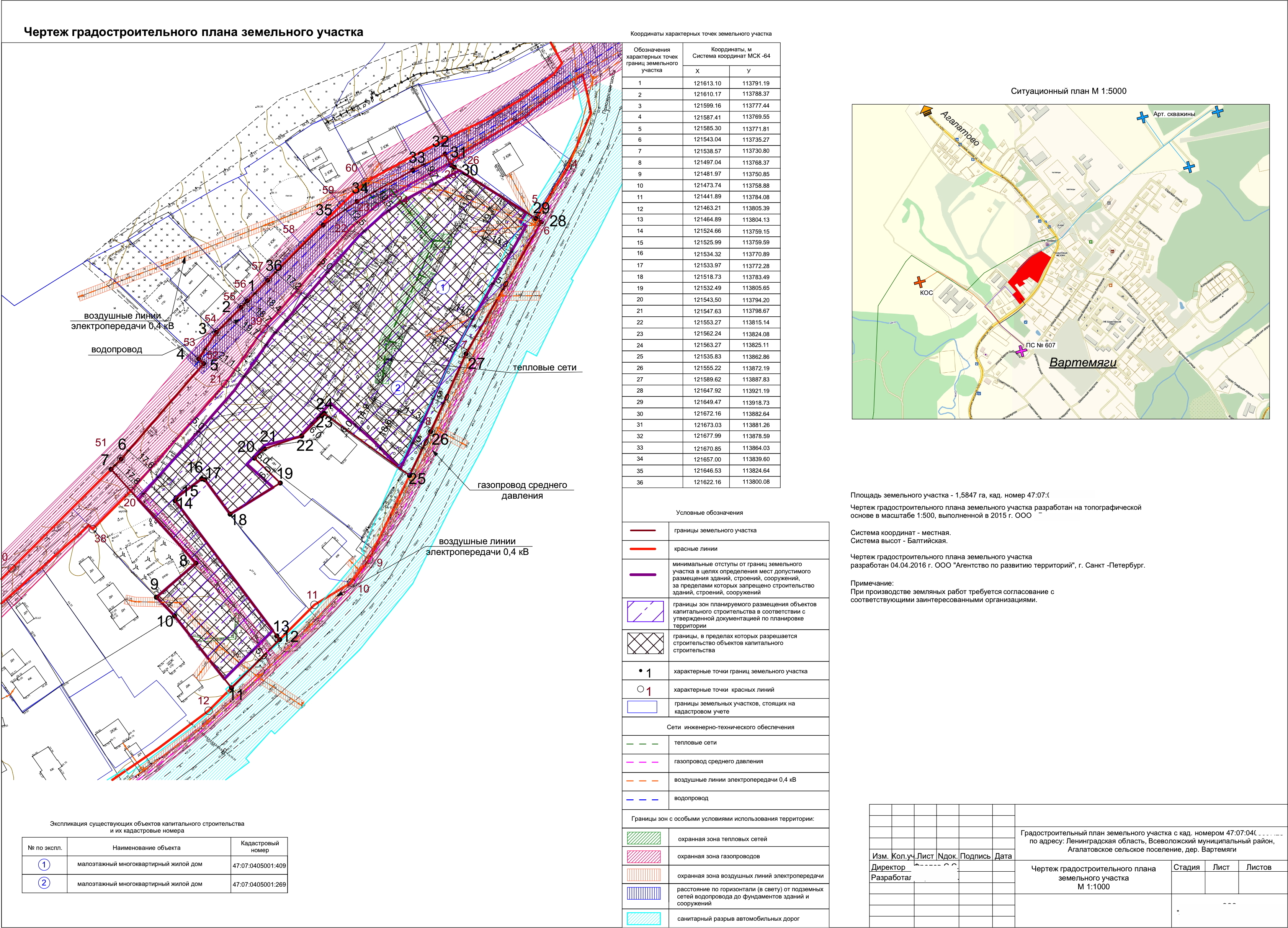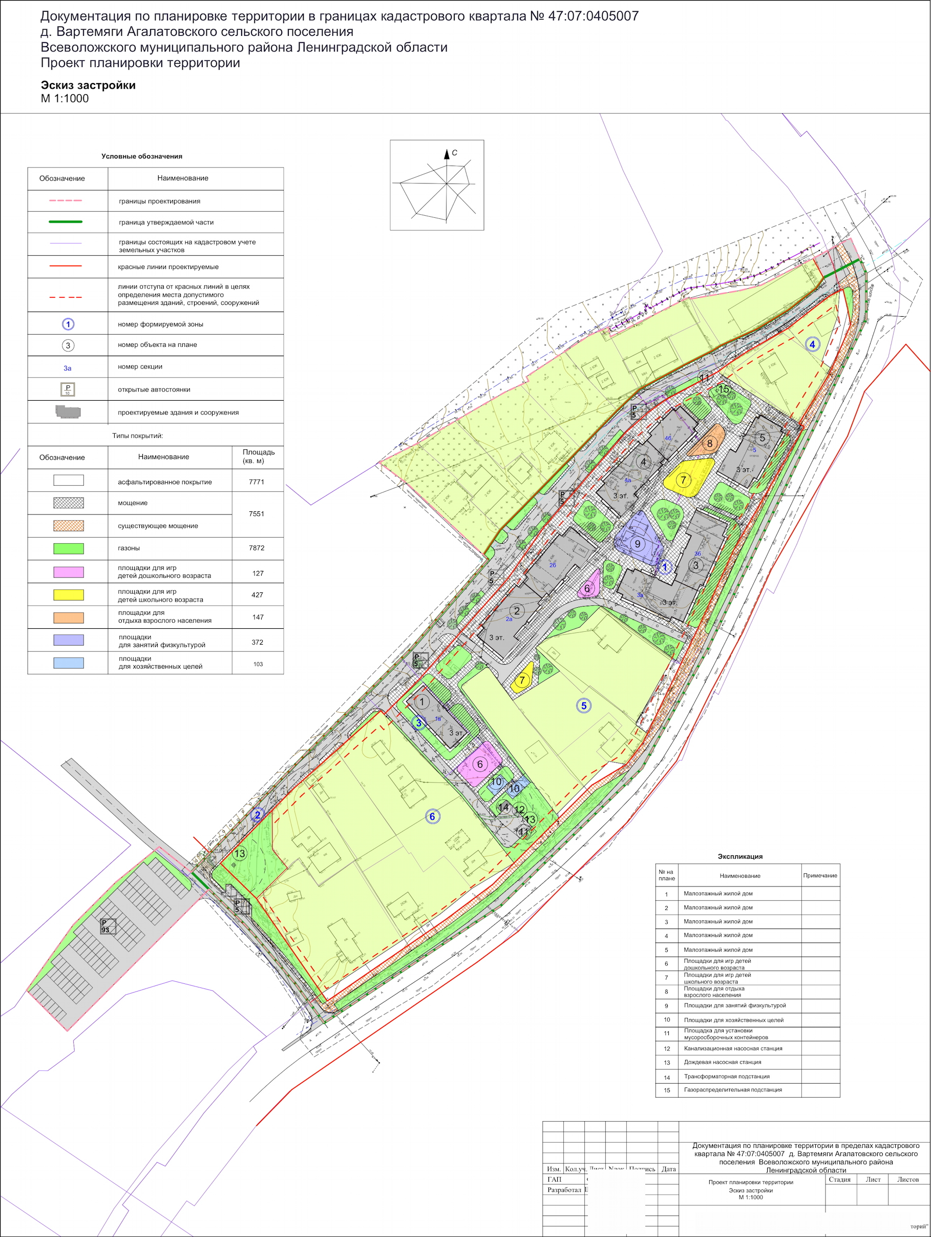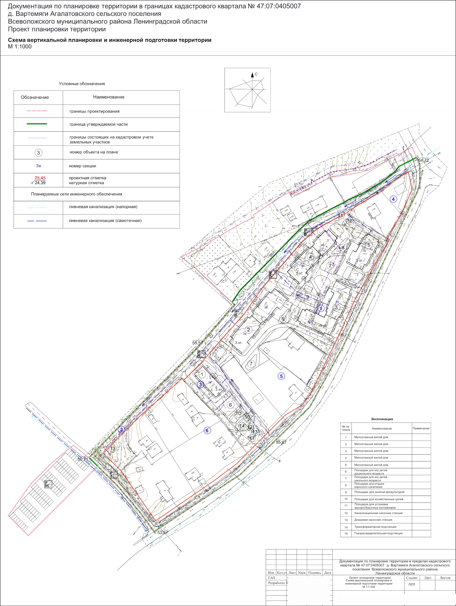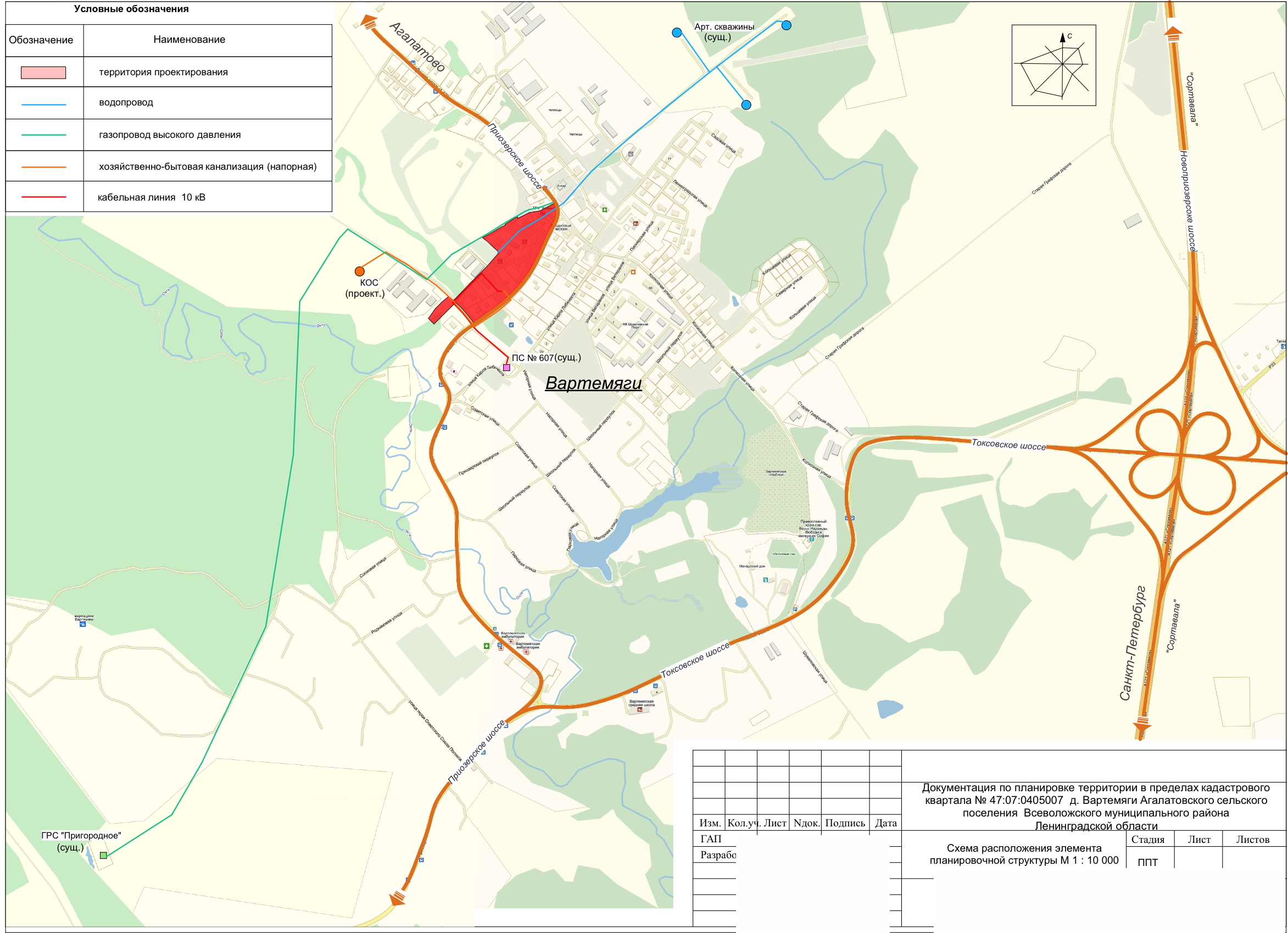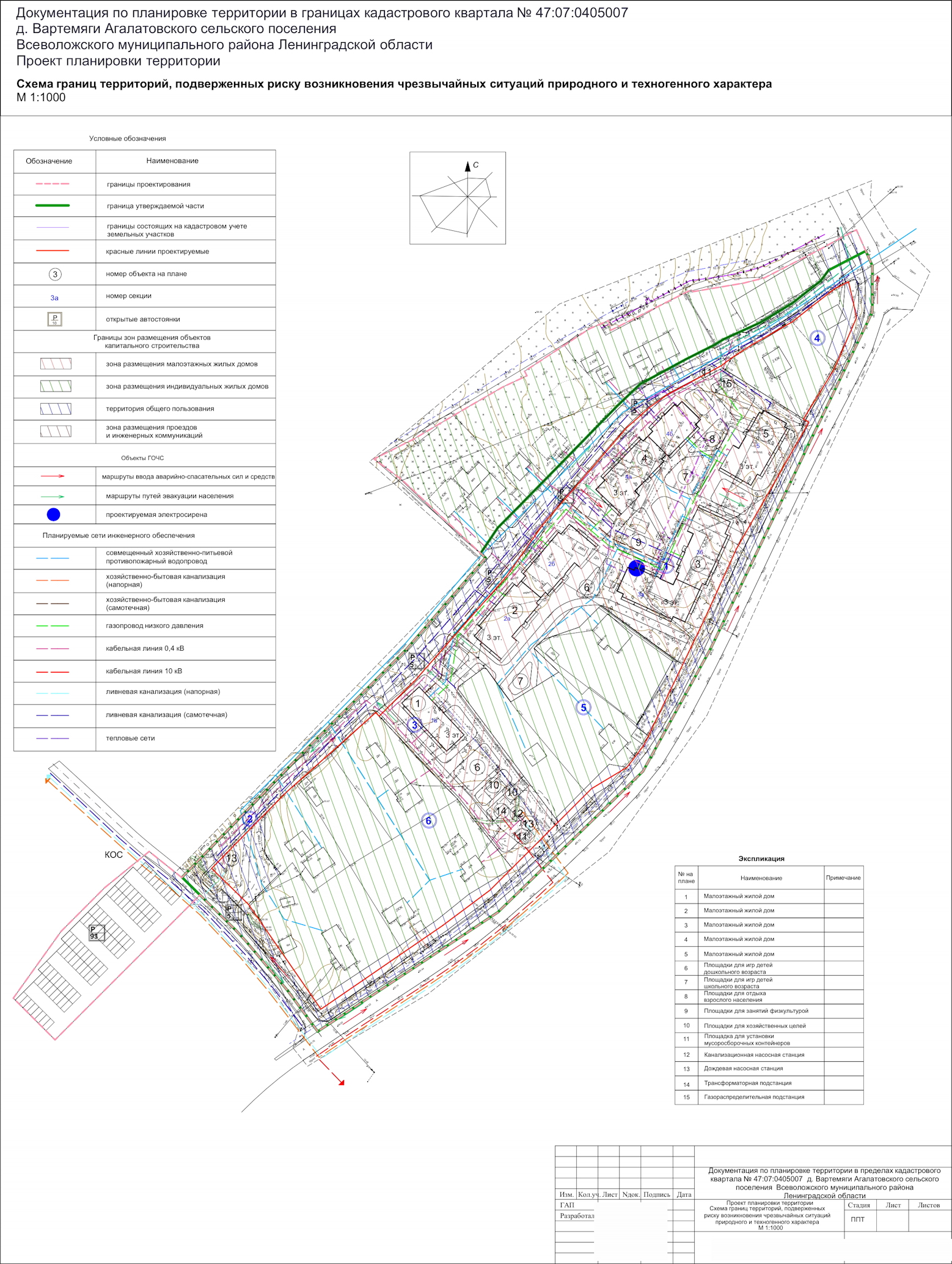 Земельные участки входят проект развития застроенной территории деревни Вартемяги площадью 4 га (кадастровый квартал 47:07:0405007) в границах:
