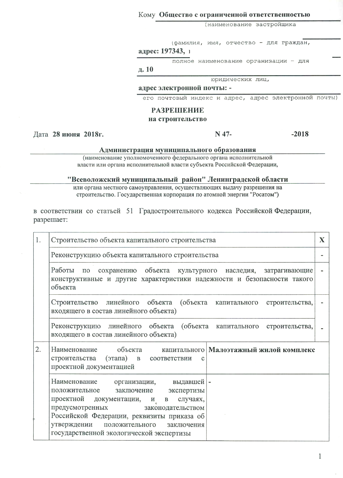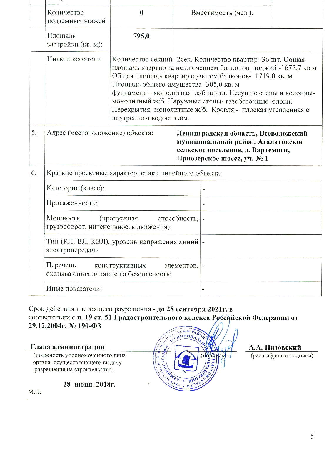 - Разрешение на строительство от 28.06.2018 со сроком действия до 28.08.2021