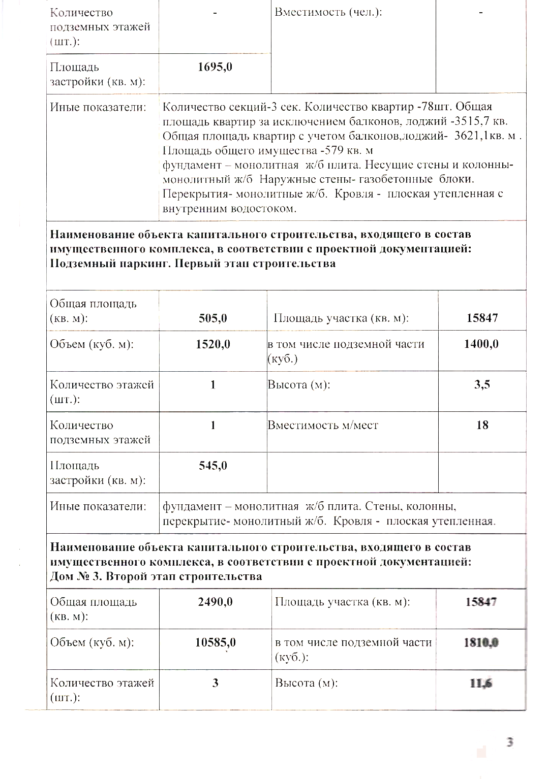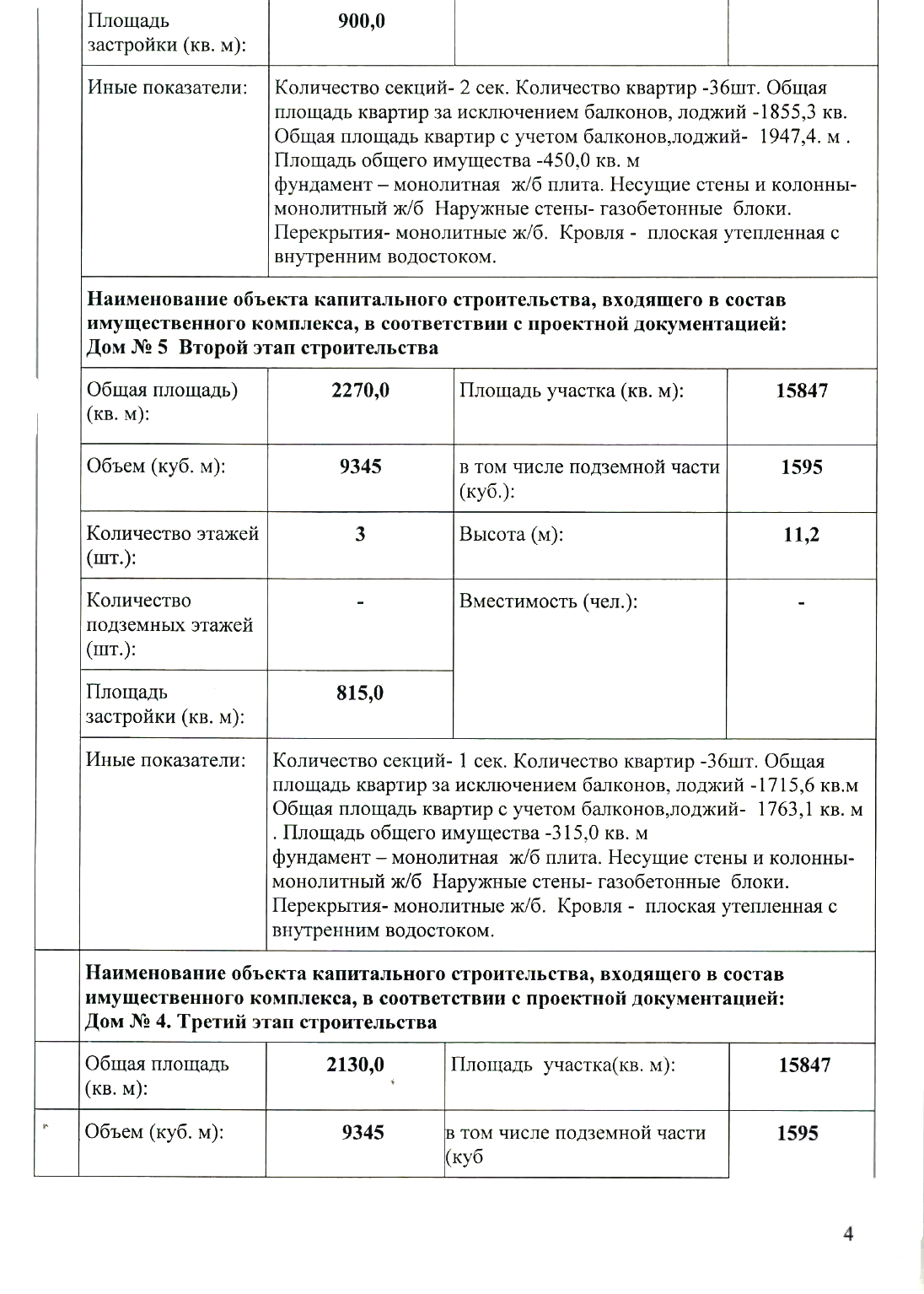 Объект капитального строительства – комплекс четырёх трёхэтажных жилых домов