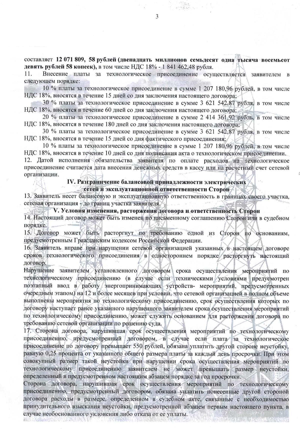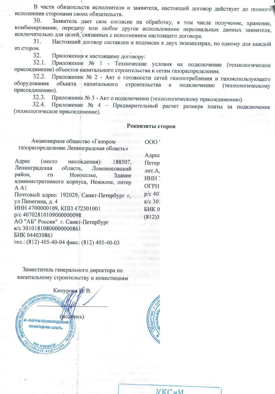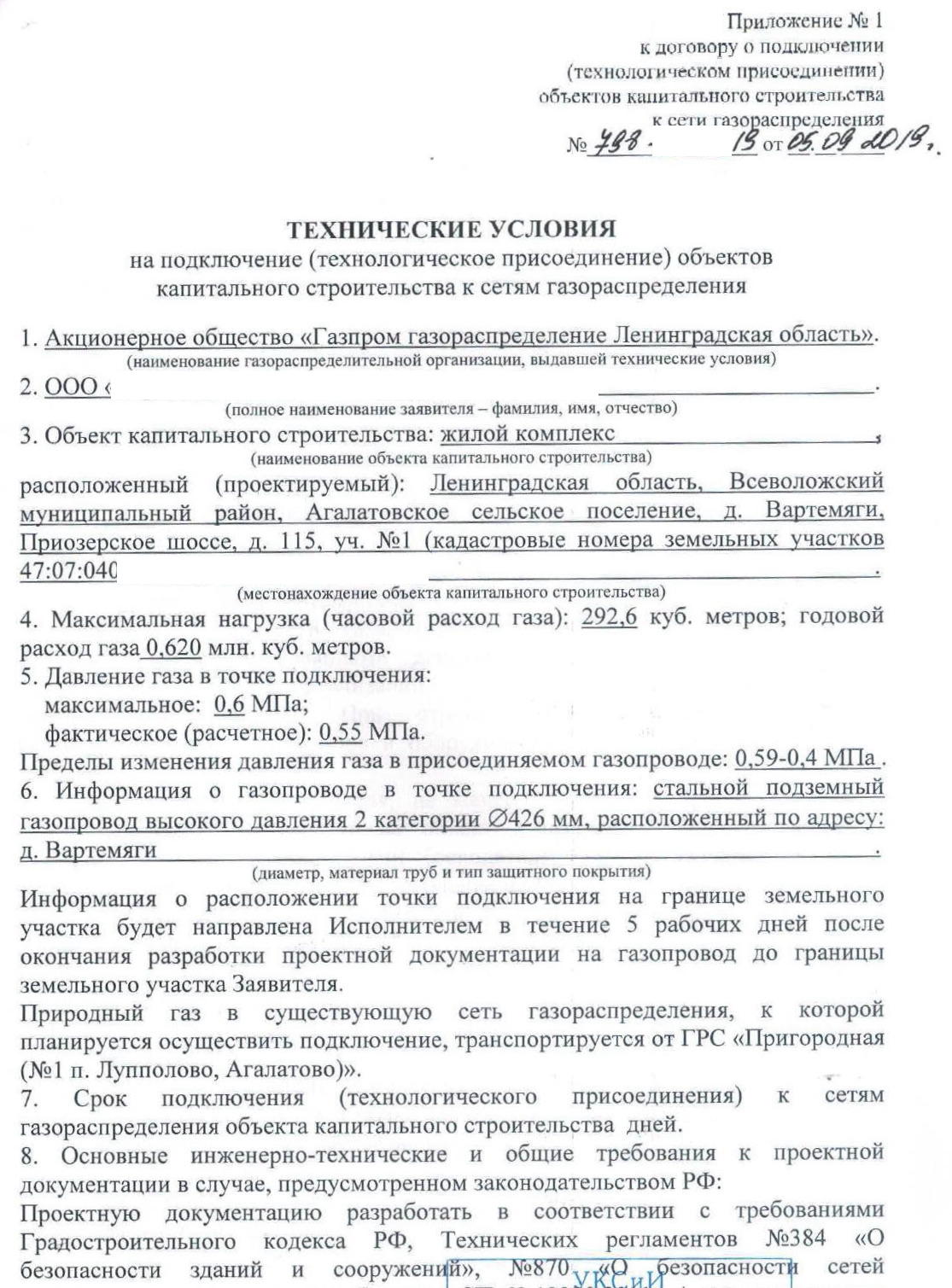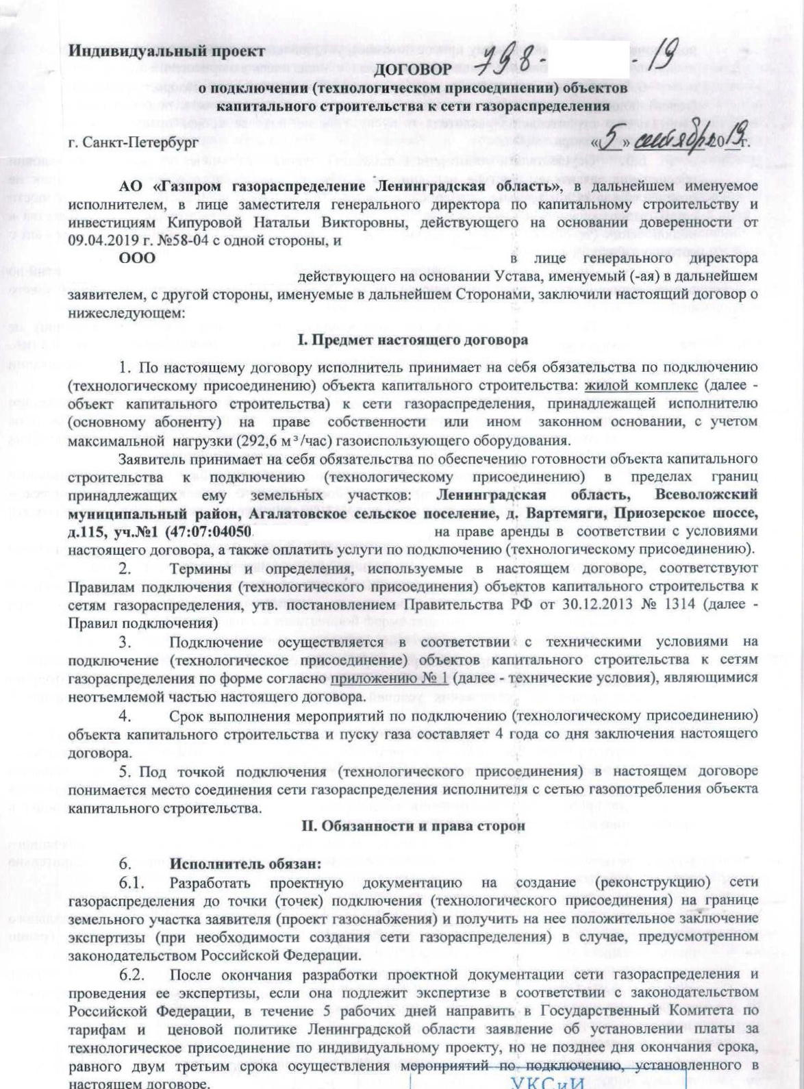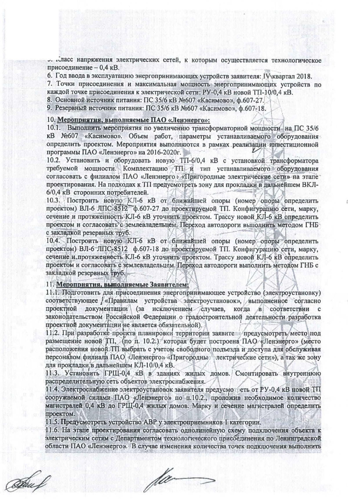 - заключённый договор с ПАО «Ленэнерго» на присоединение к сетям электроснабжения
