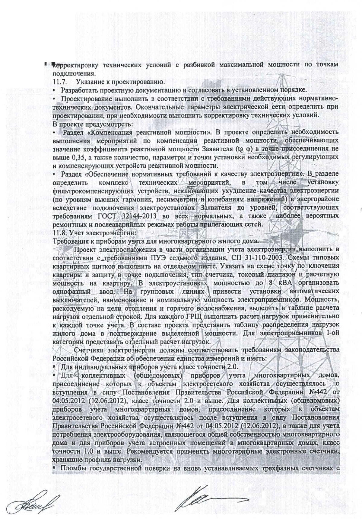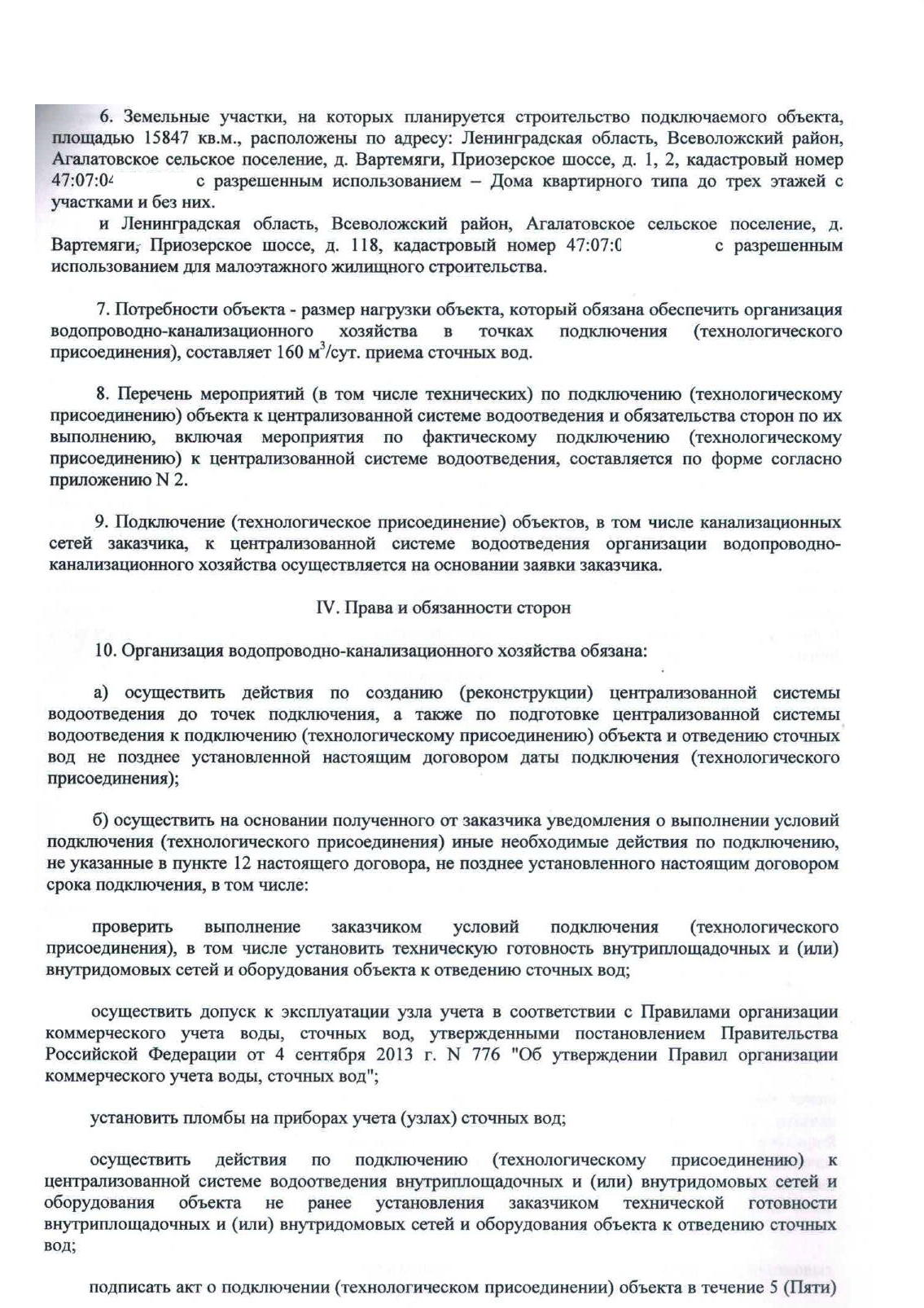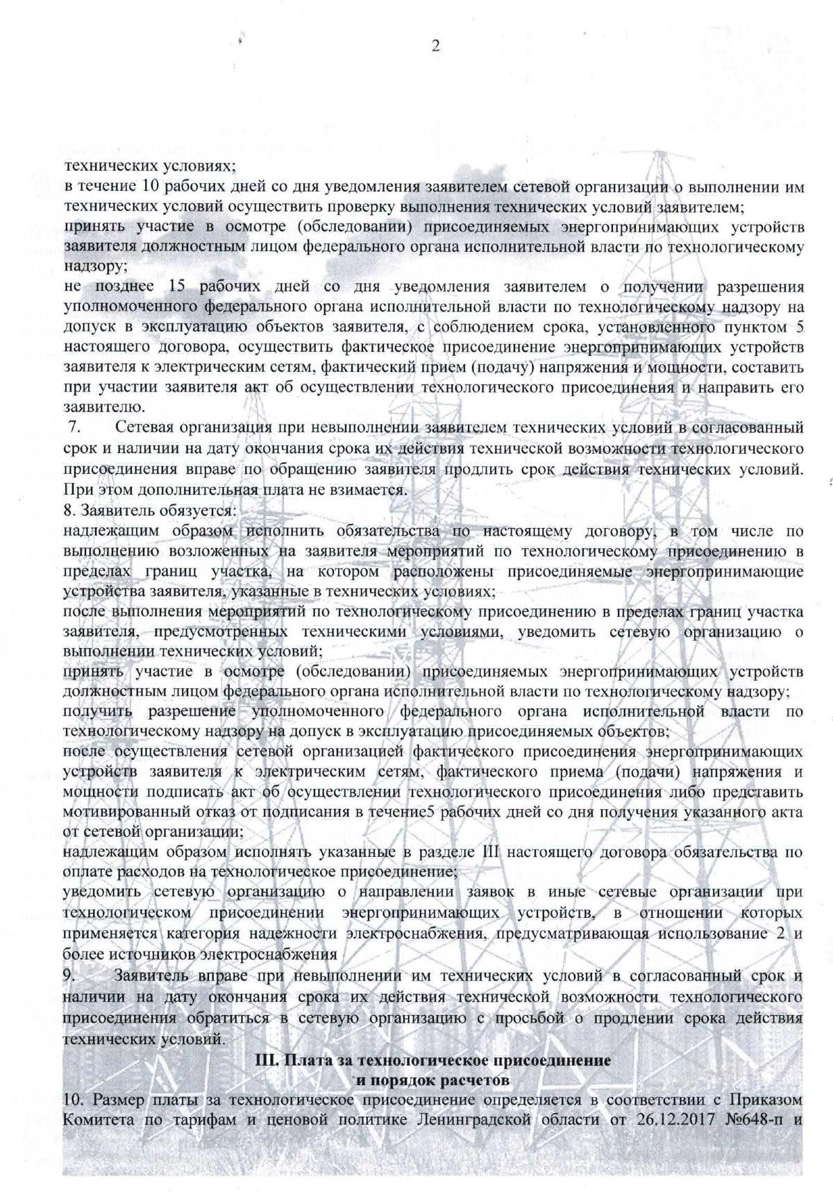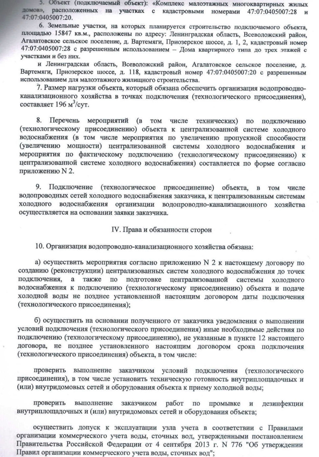 - заключённый договор с ПАО «Ленэнерго» на присоединение к сетям электроснабжения