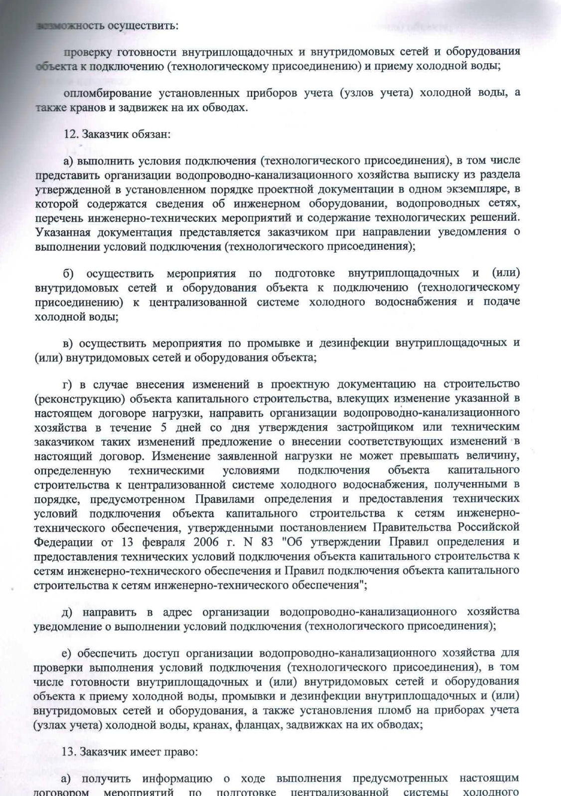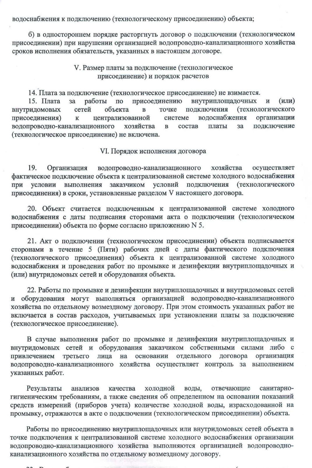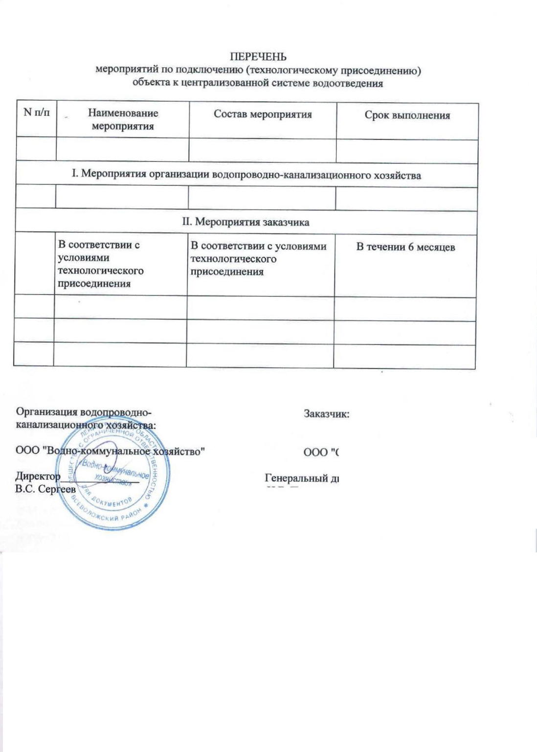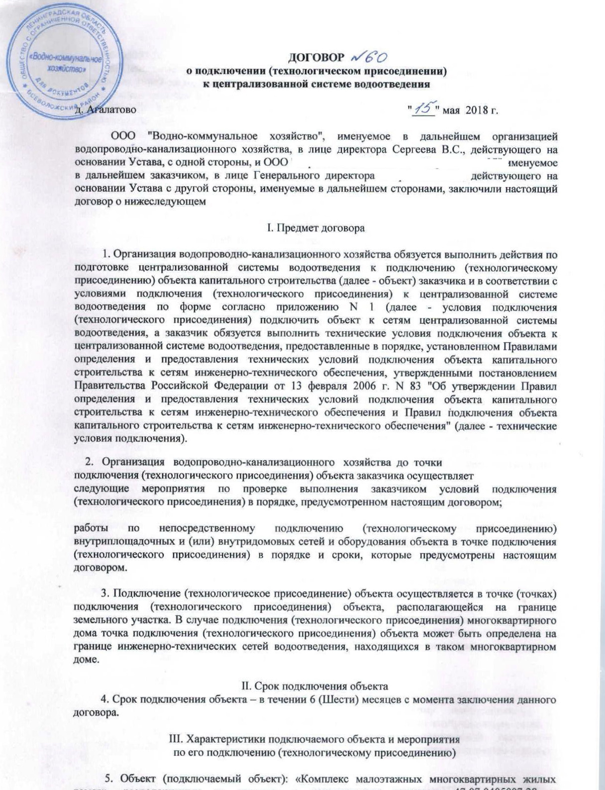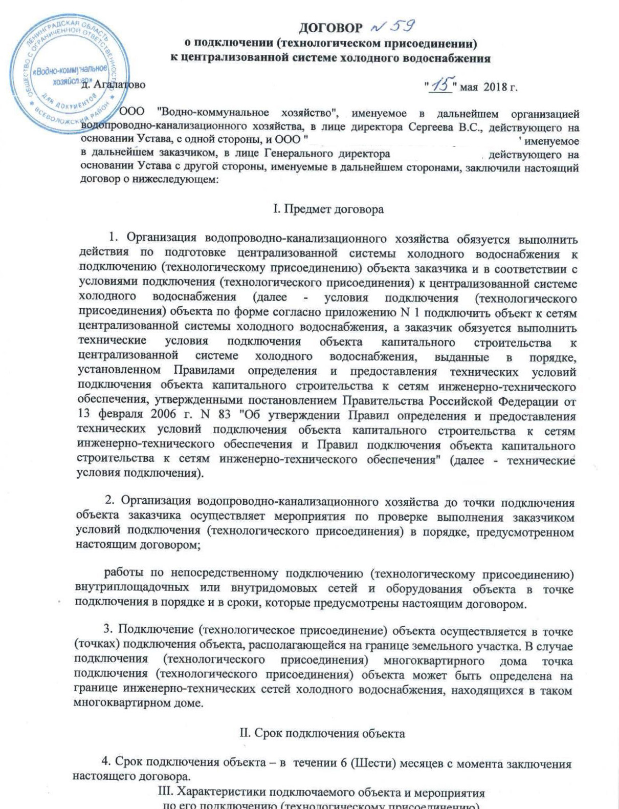 - заключённый договор на подключение к сети хозяйственно-питьевого водопровода ООО «Водно-коммунального хозяйства»: