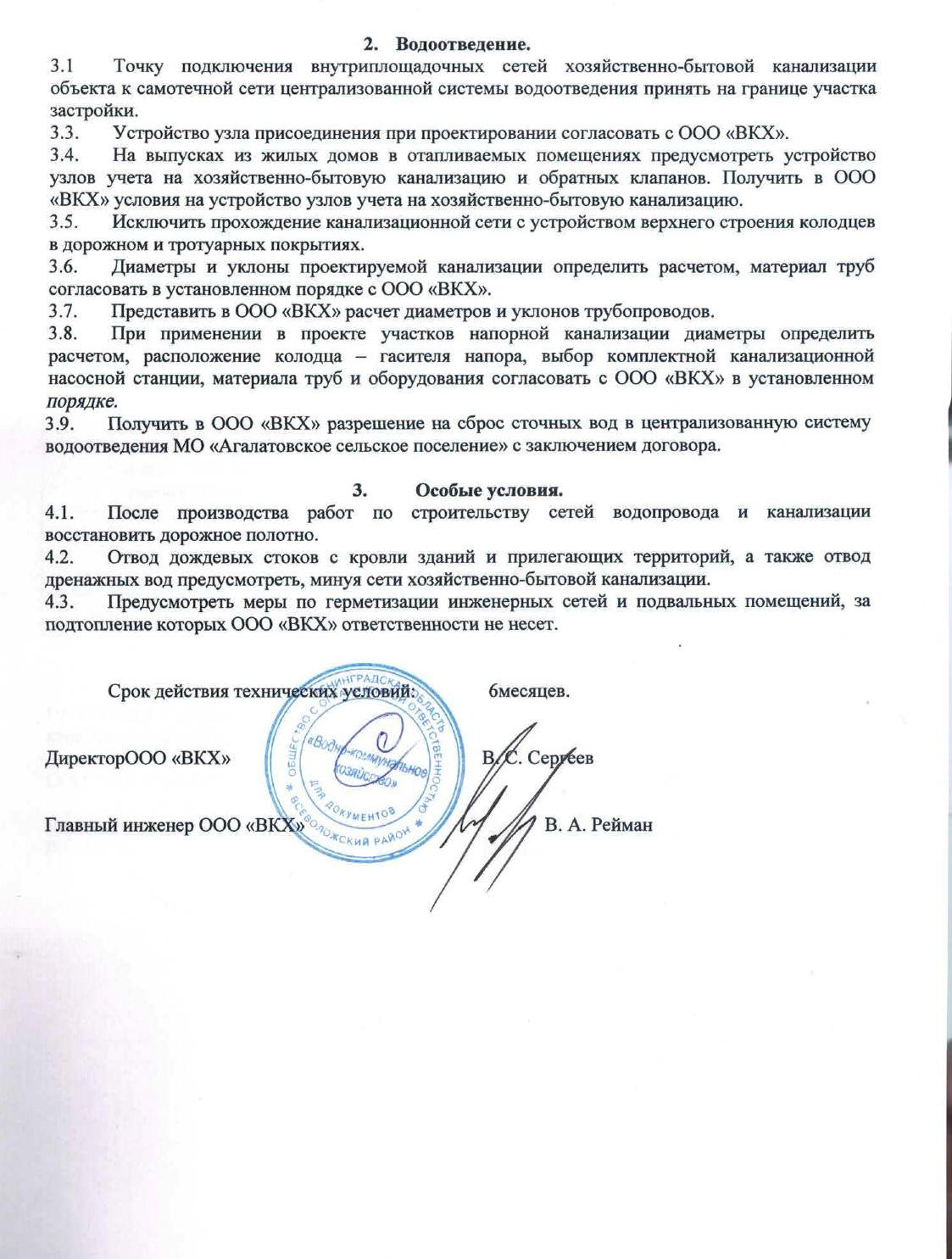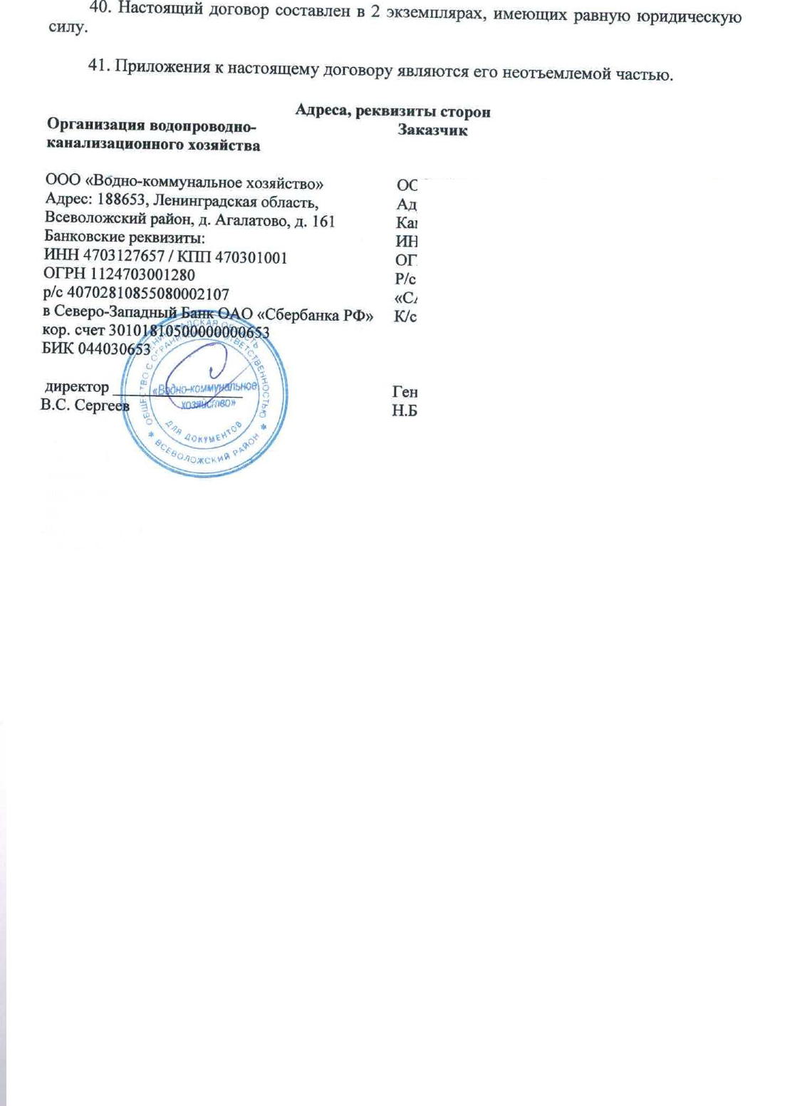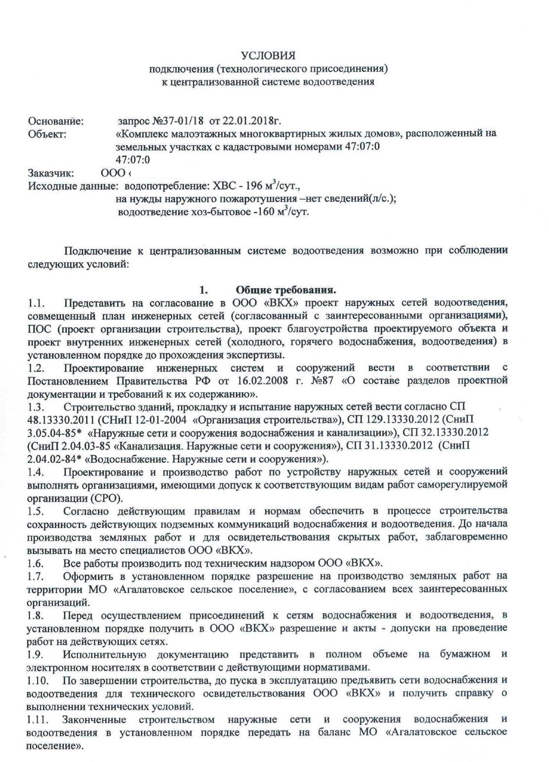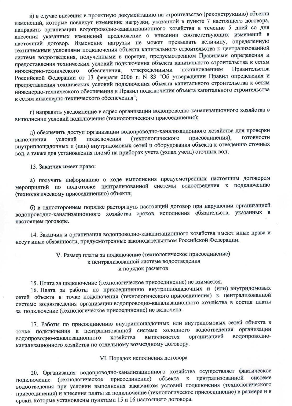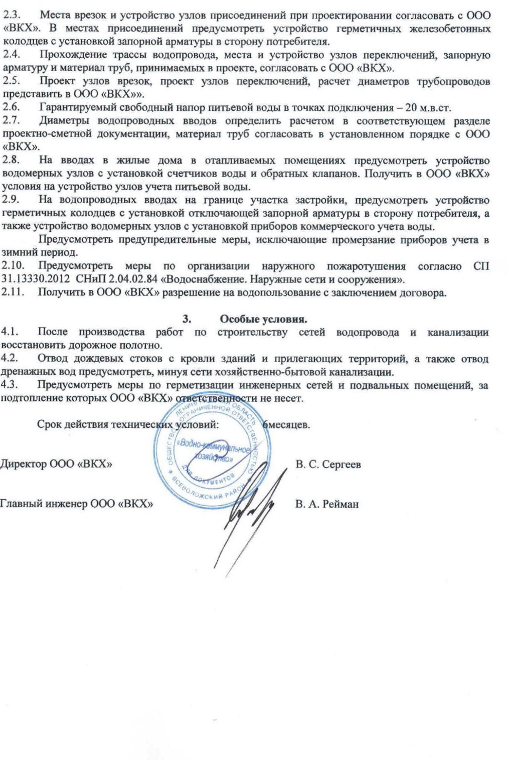 - заключённый договор на подключение к сети хозяйственно-питьевого водопровода ООО «Водно-коммунального хозяйства»: