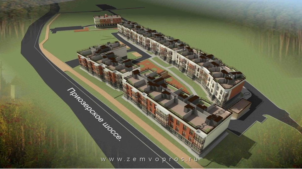 Земельный участок общей площадью 1.71 га с разрешением на строительство четырёх трёхэтажных многоквартирных домов на трассе Санкт-Петербург-Сортавала в деревне Вартемяги.