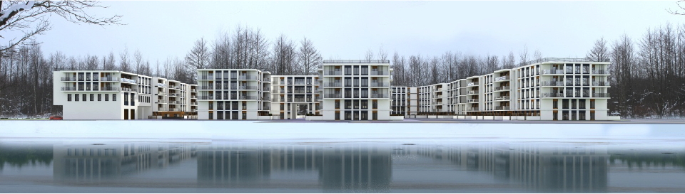 Корпуса расположены таким образом, чтобы максимально визуально задействовать существующий ландшафт.