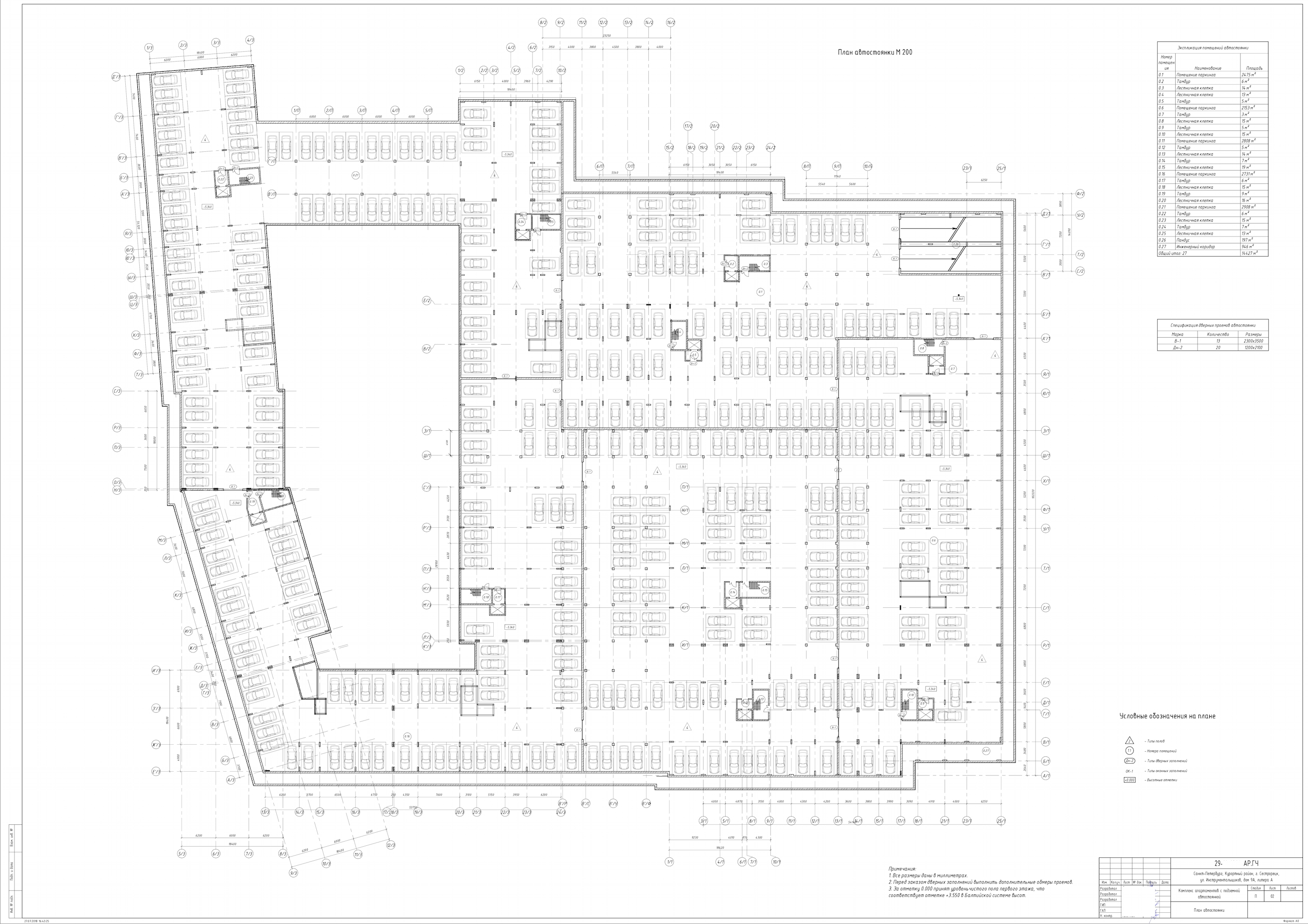 Подземная автостоянка разделена пожарные отсеки площадью не более 3000 м2.