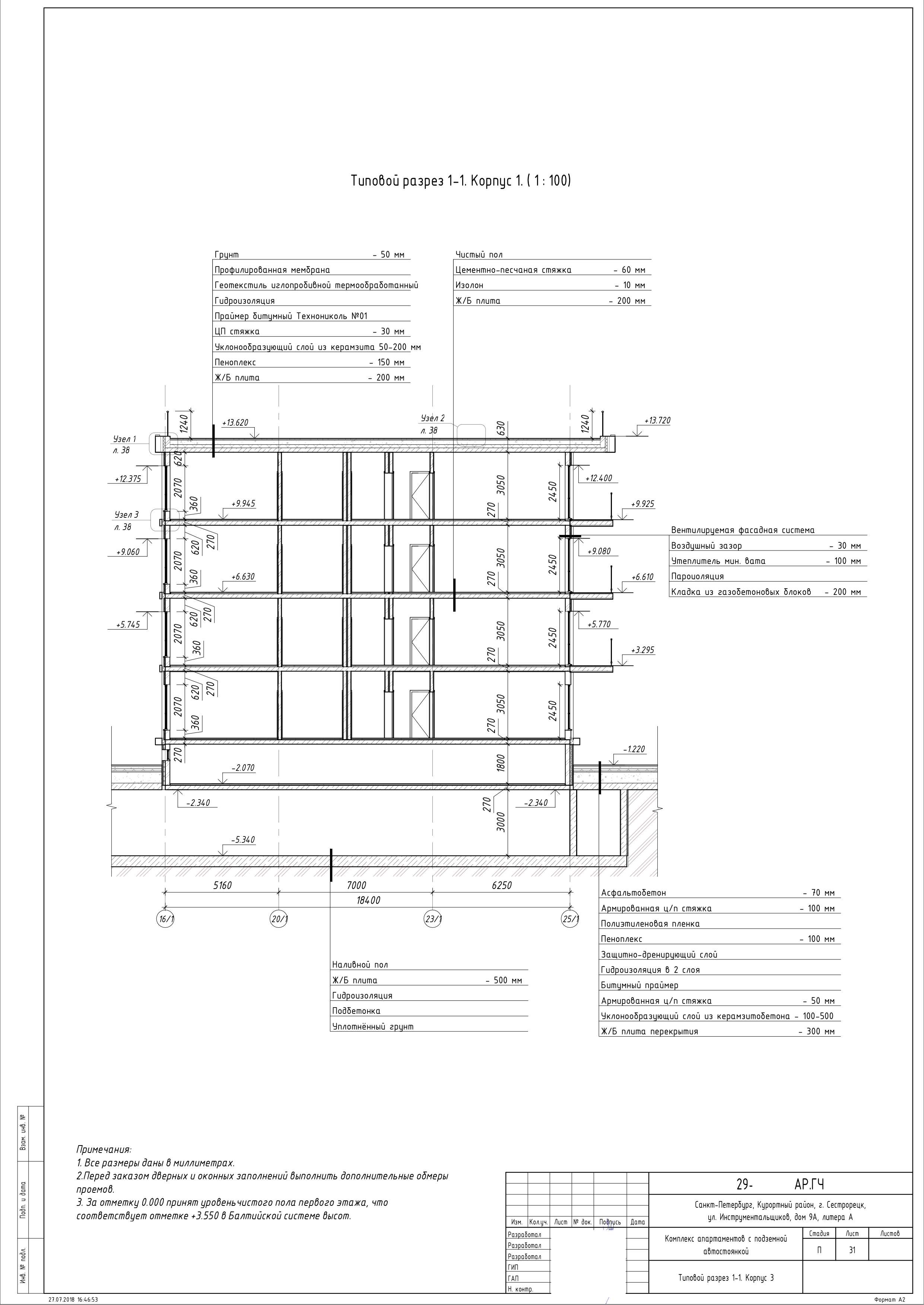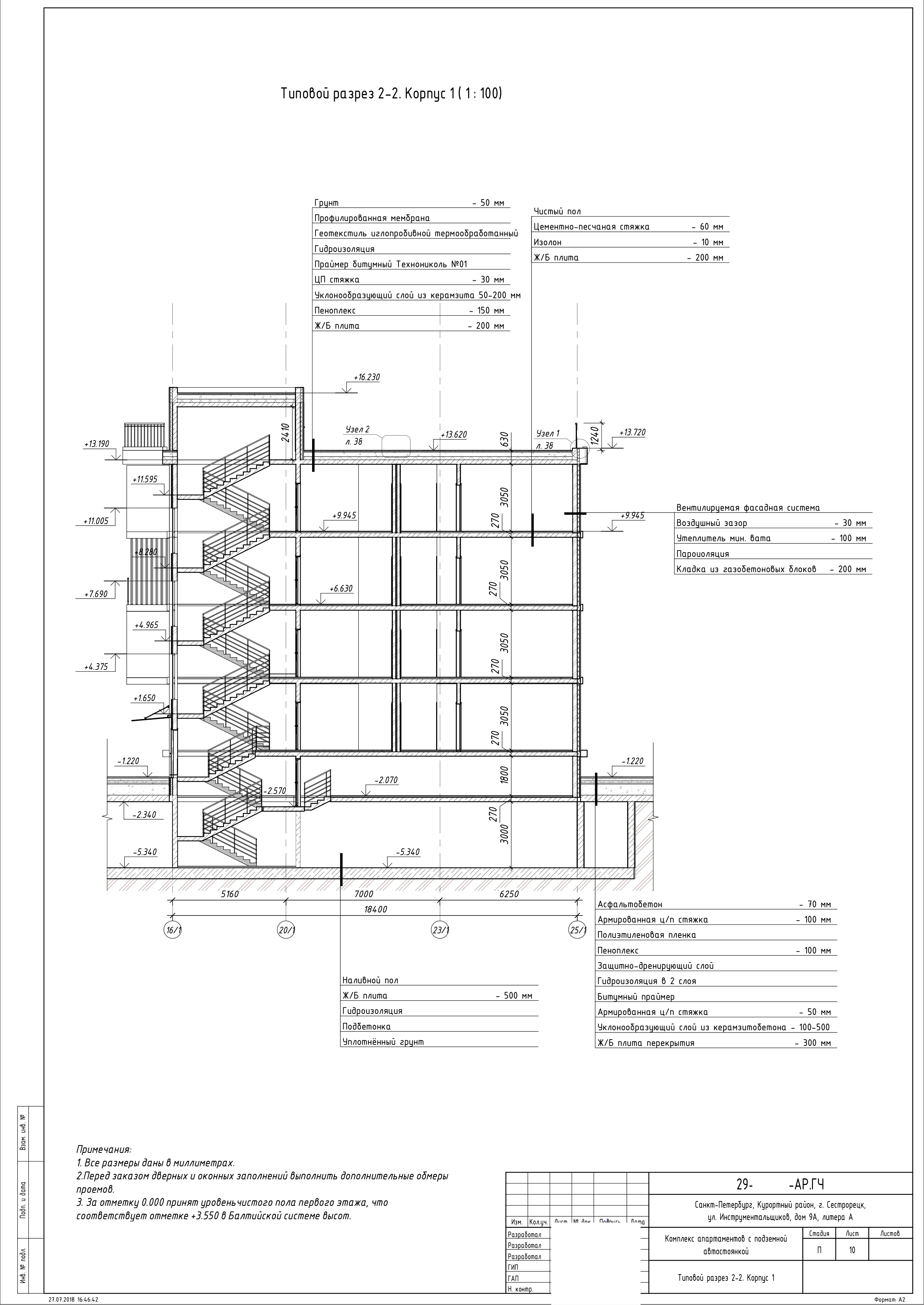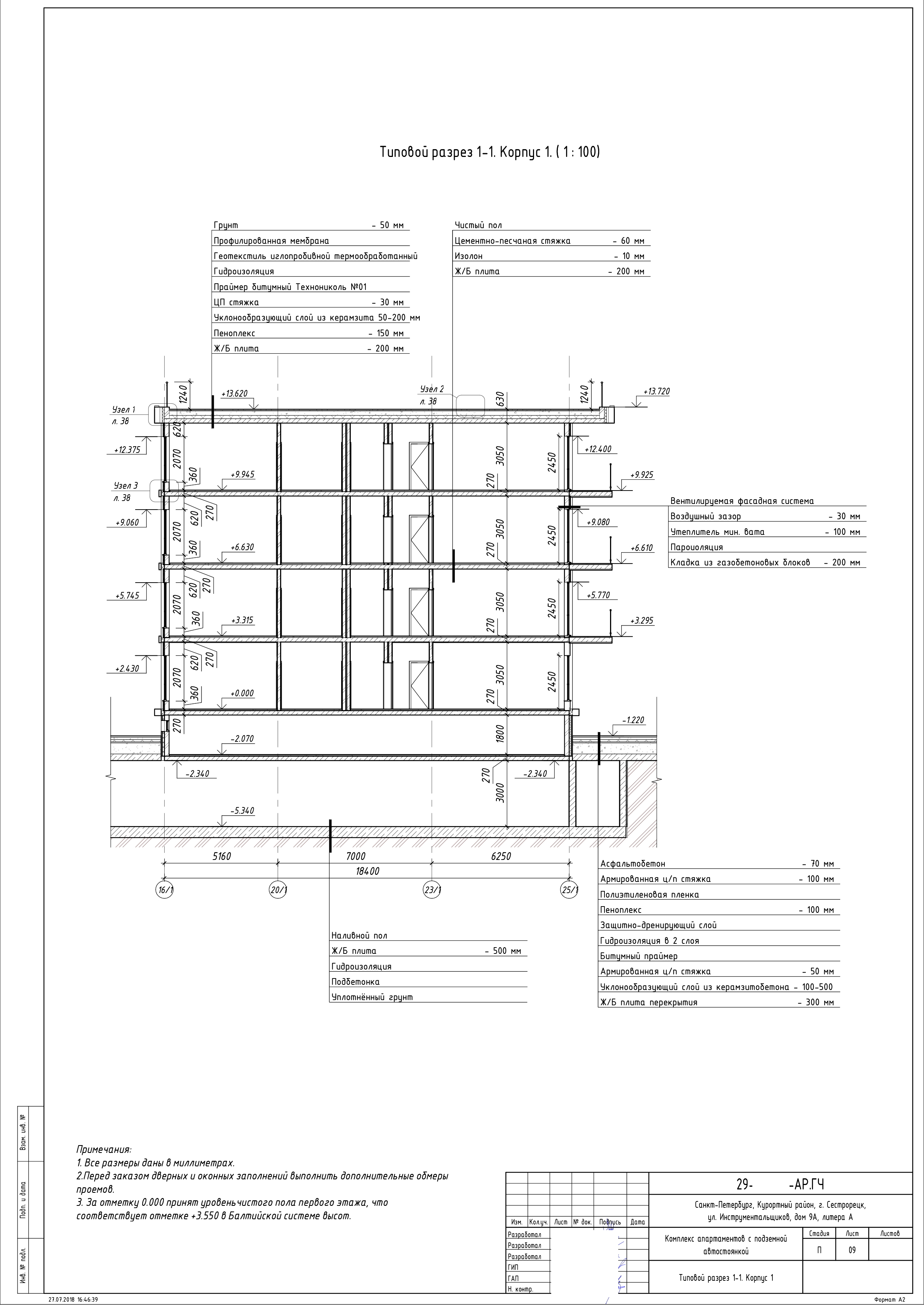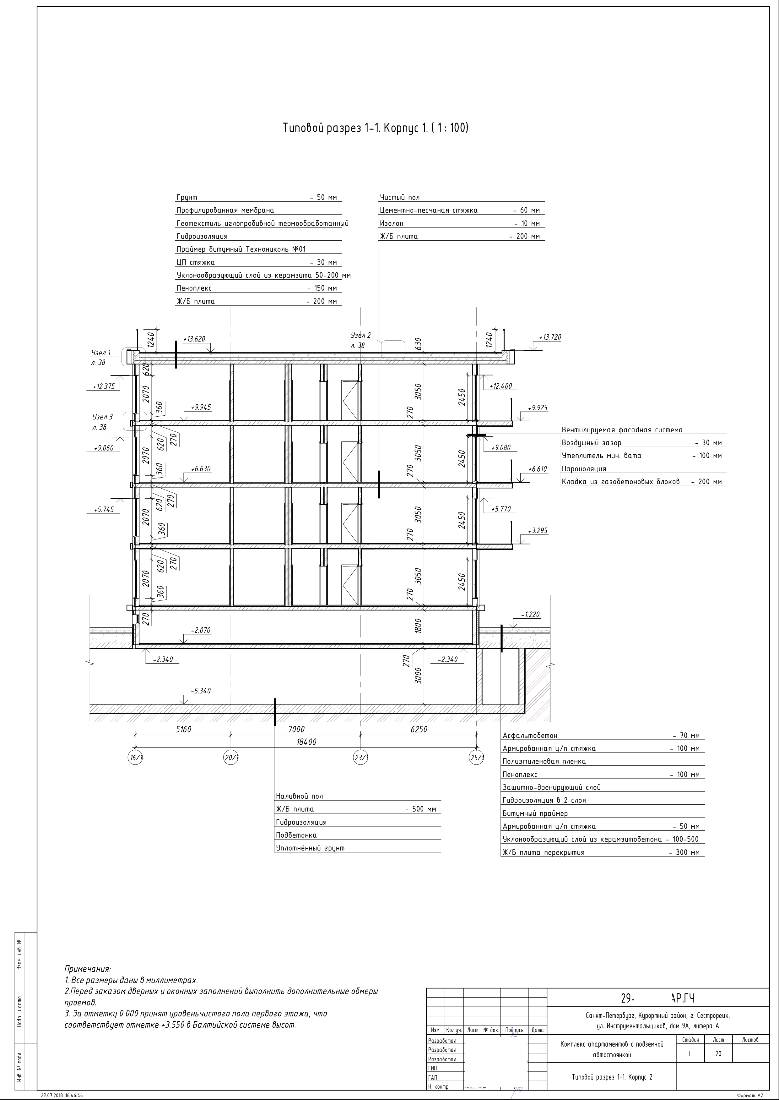 - в пирогах пола предусмотрена прокладка звукоизоляционного материала между ж/б плитой и стяжкой