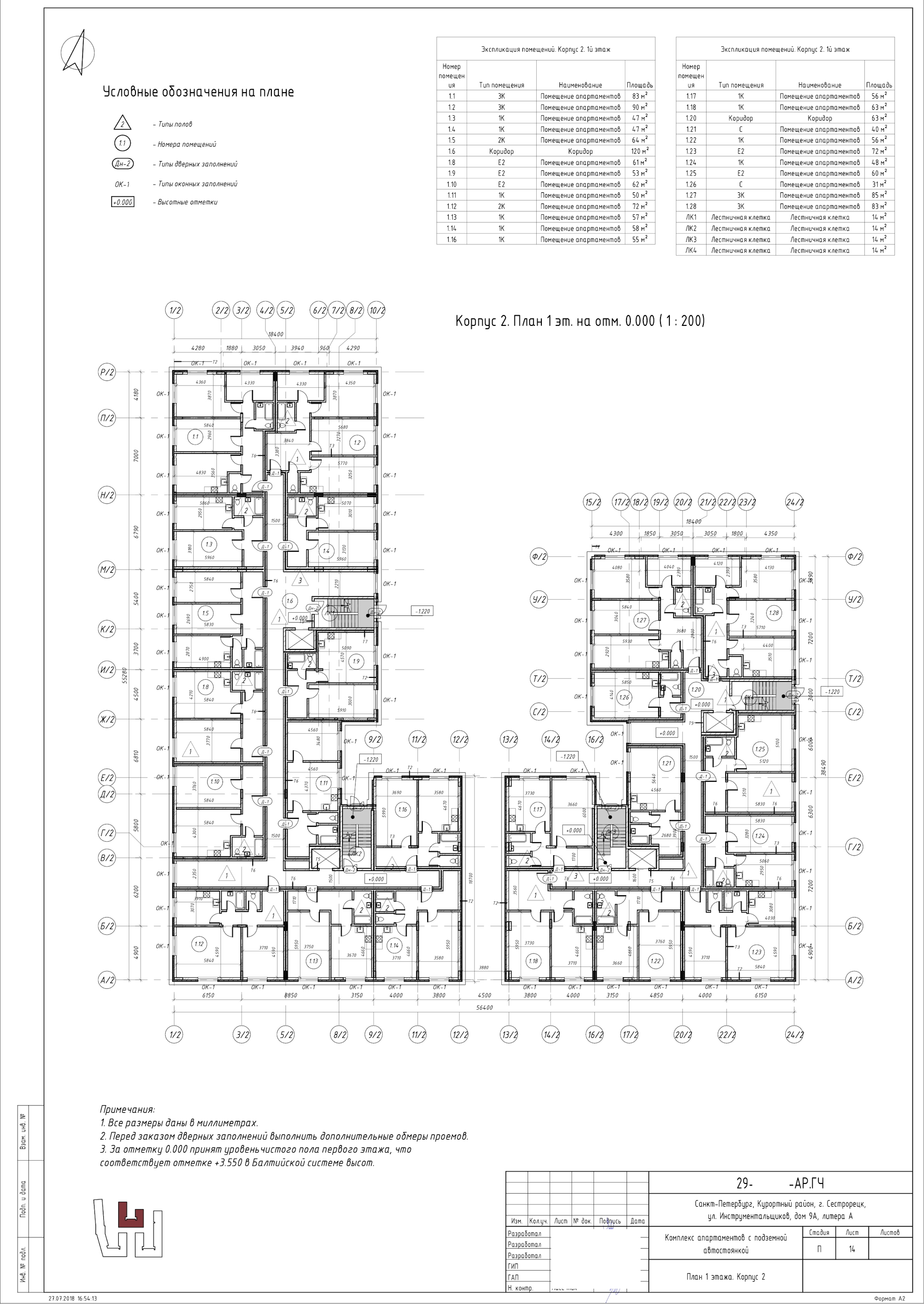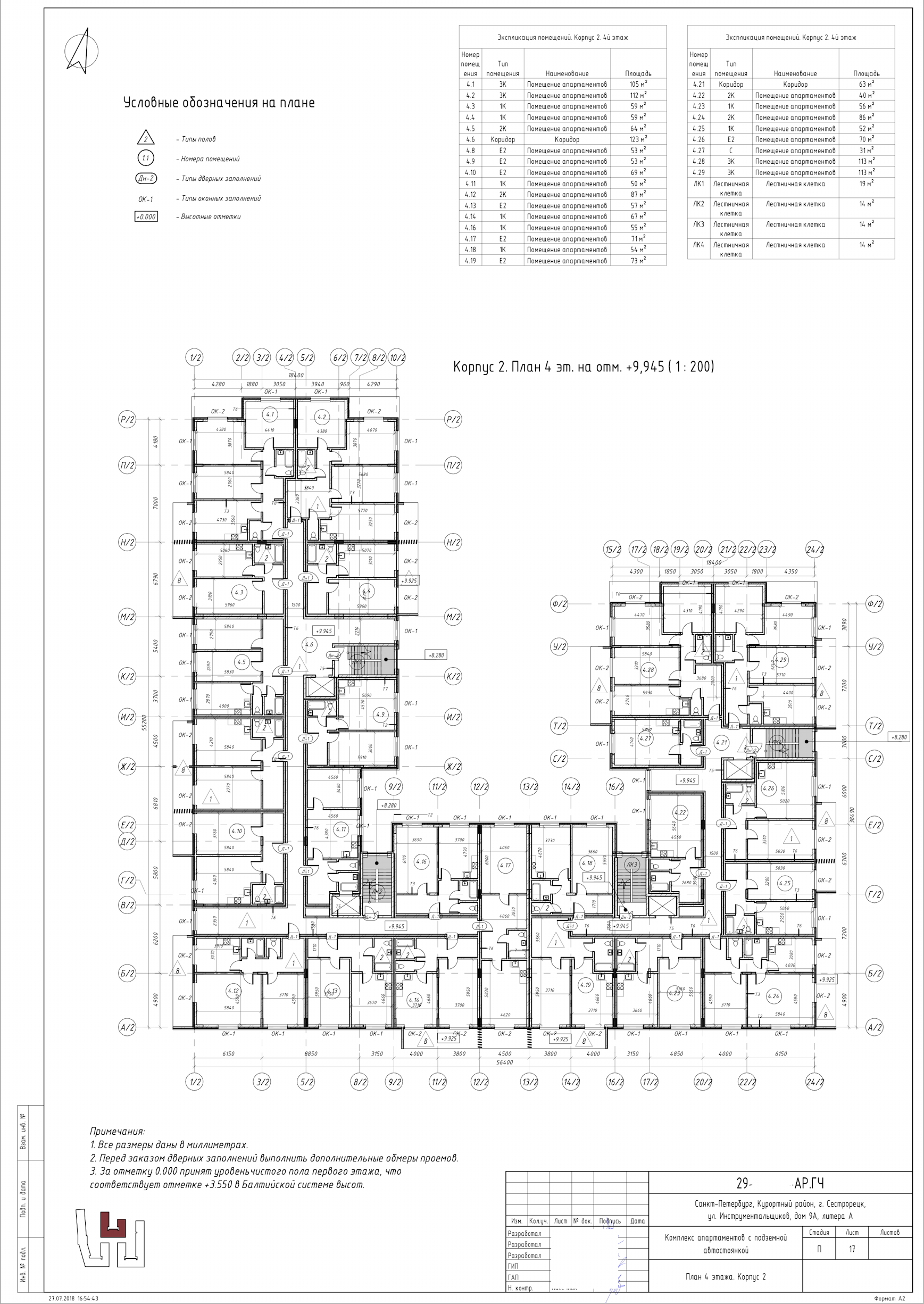- общая площадь помещений всех корпусов и автостоянки (с учётом инженерных коридоров) – 54 195 м2