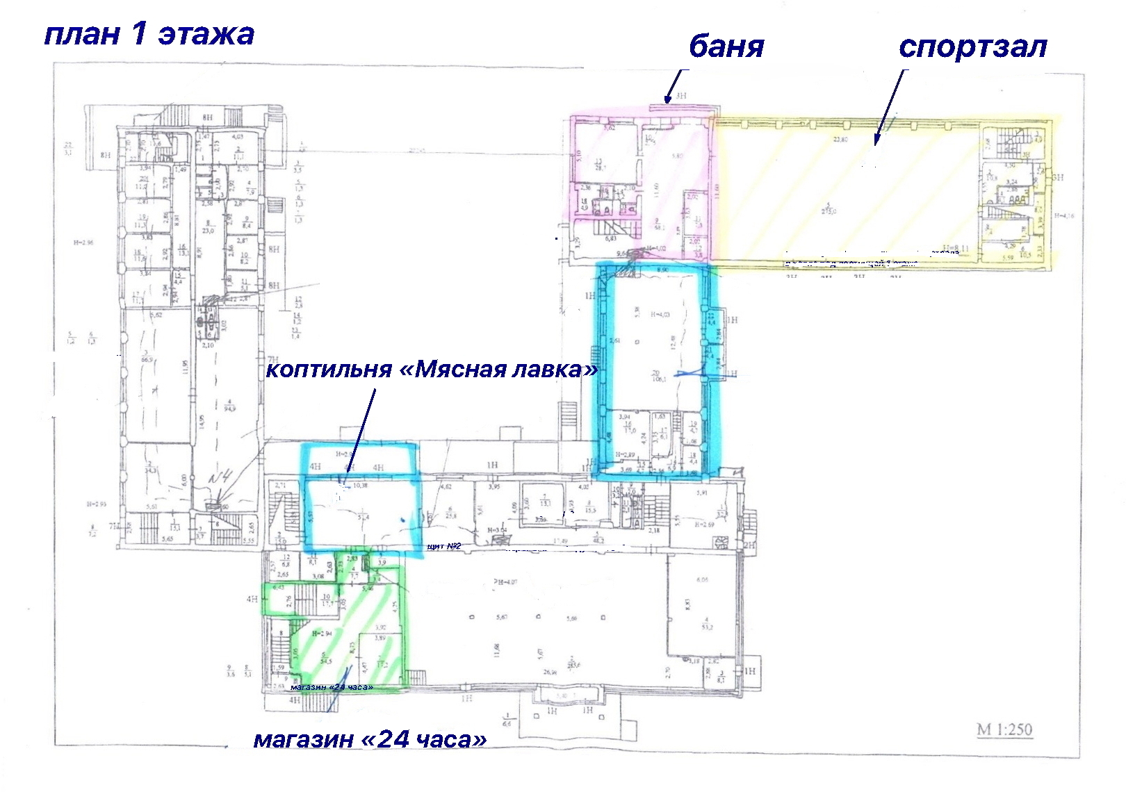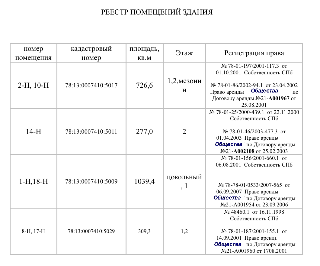 - отдельные помещения и части помещений – в аренде юридического лица (Общества):