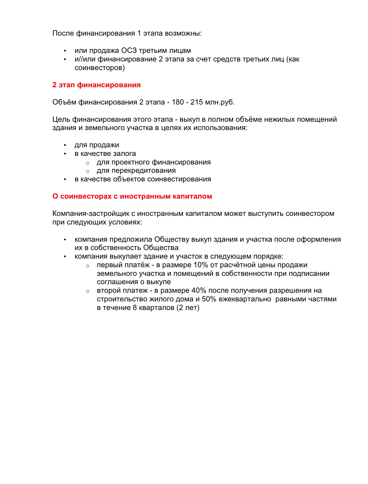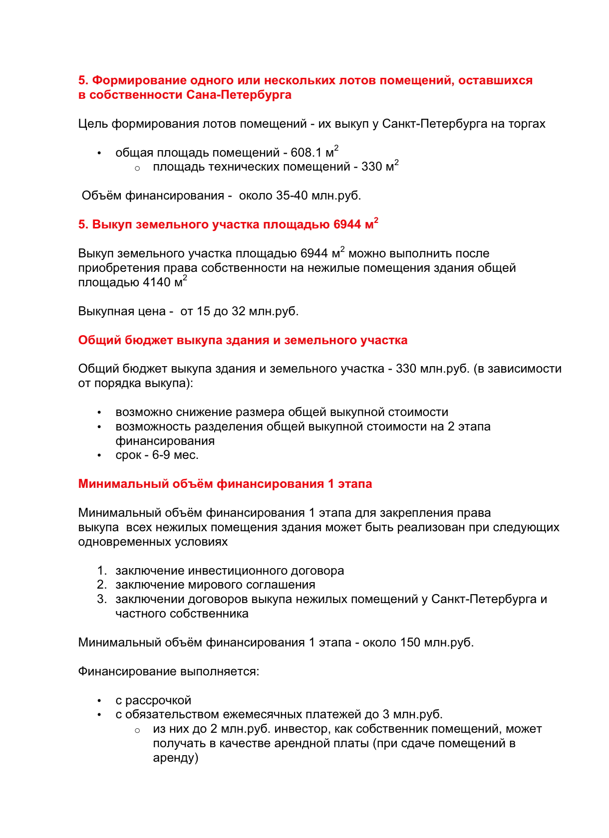 Цель финансирования этого этапа – выкуп в полном объёме нежилых помещений здания и земельного участка в целях их использования: