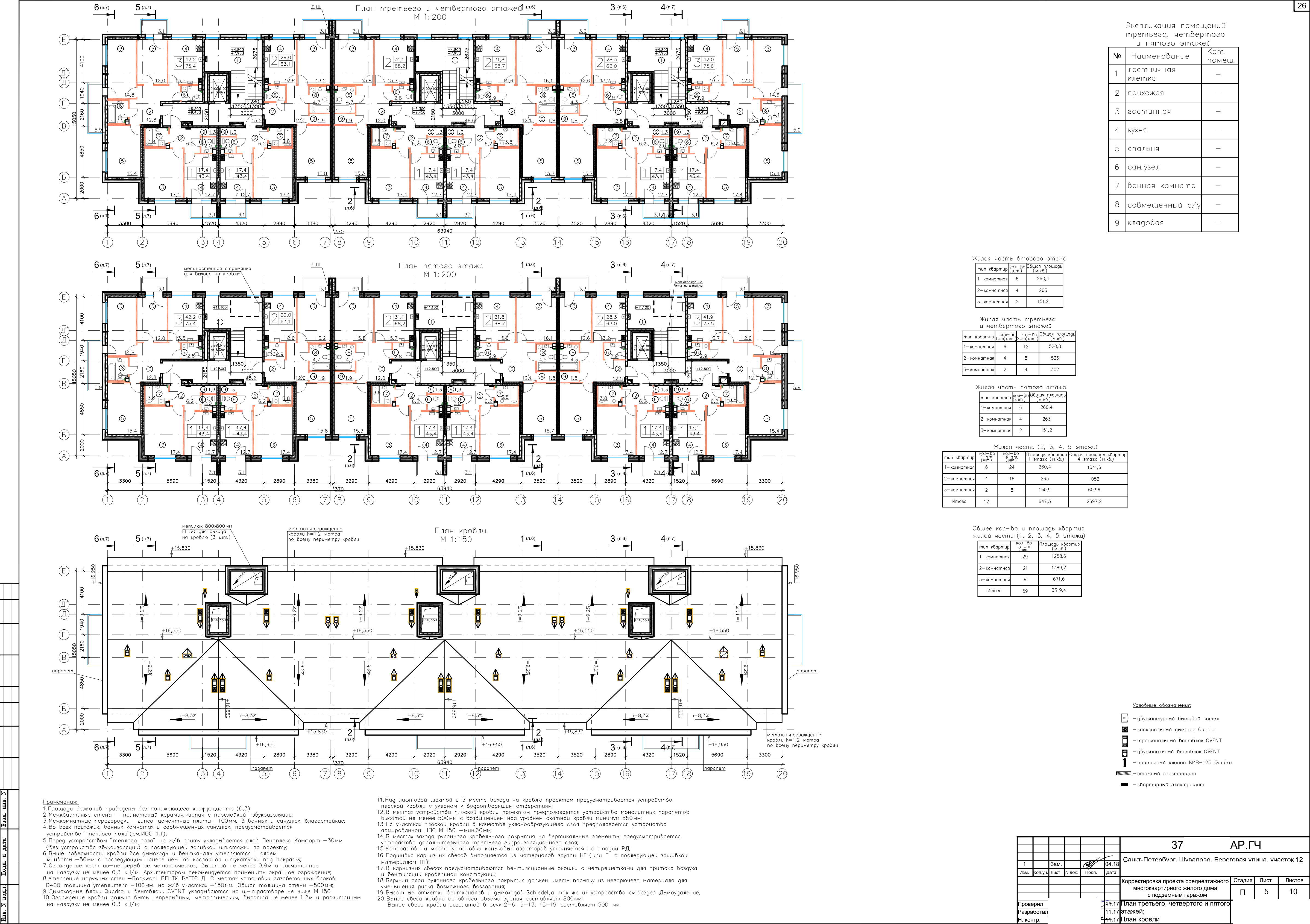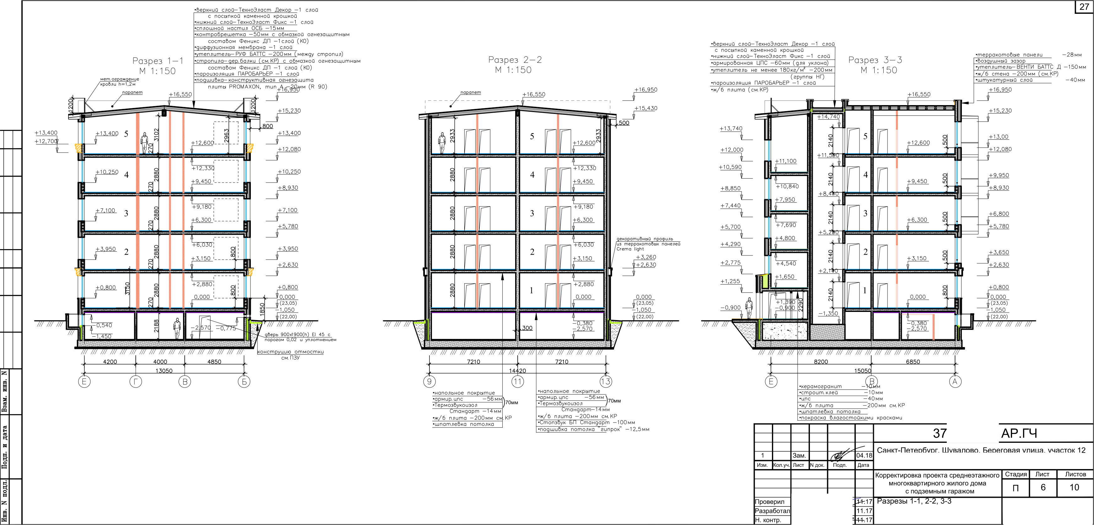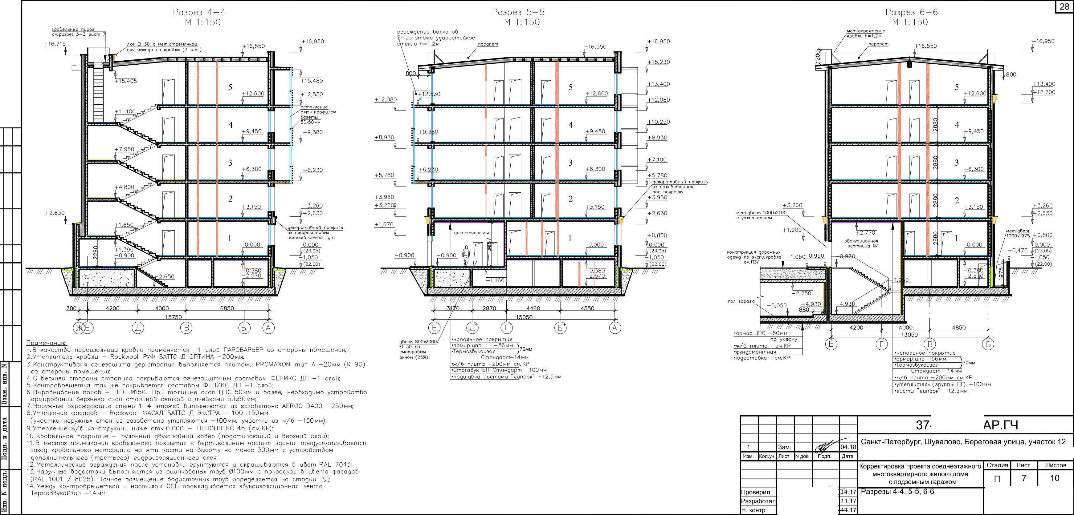 Согласно проекту, на участках размещен трёхсекционный 5-этажный жилой дом с подземным паркингом (встроенно-пристроенным).