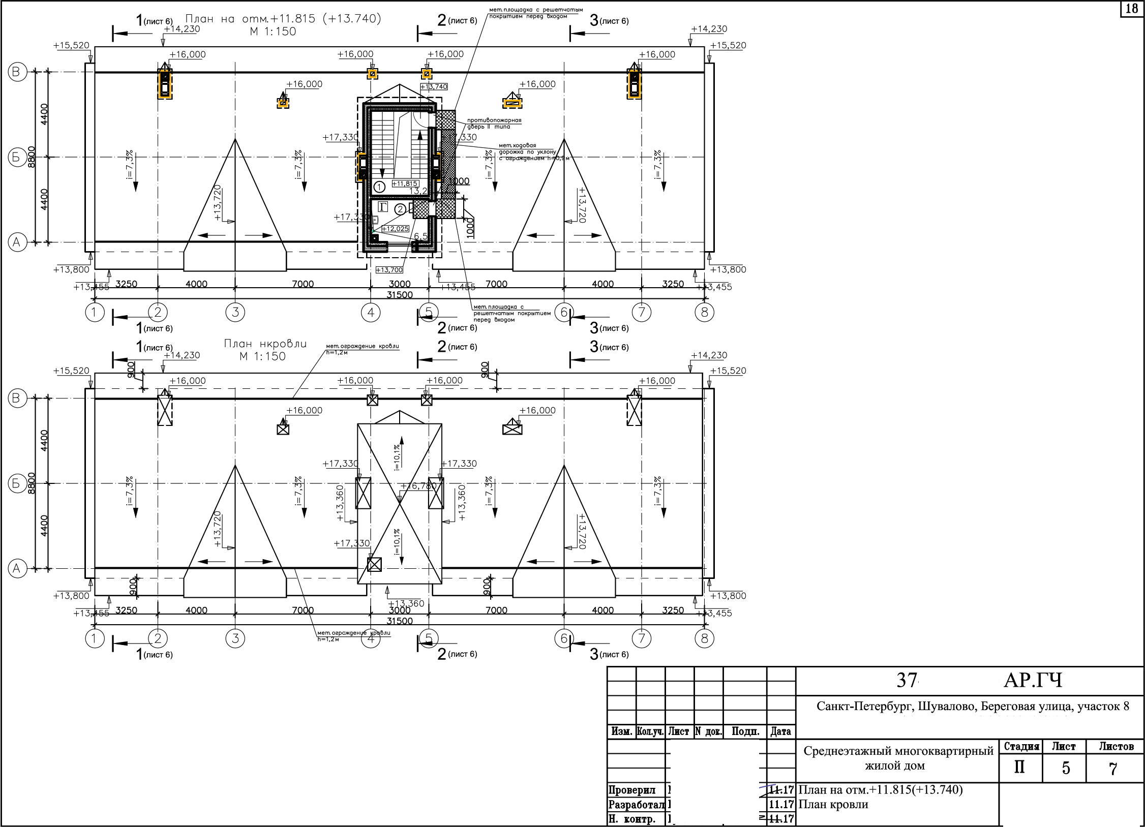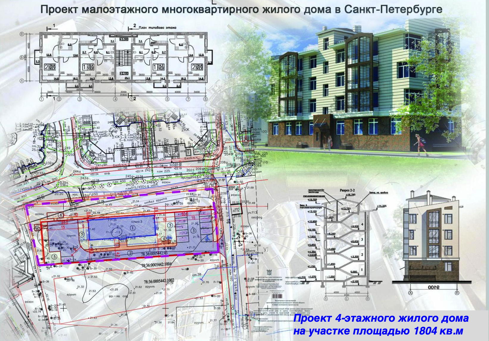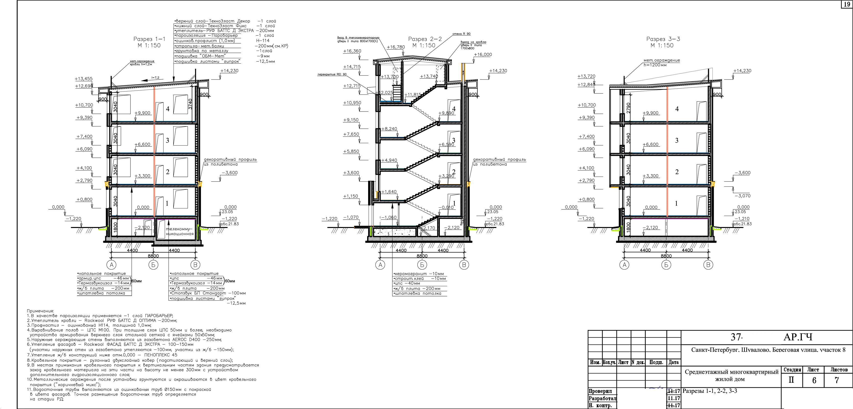Согласно проекту, на участках размещен трёхсекционный 5-этажный жилой дом с подземным паркингом (встроенно-пристроенным).