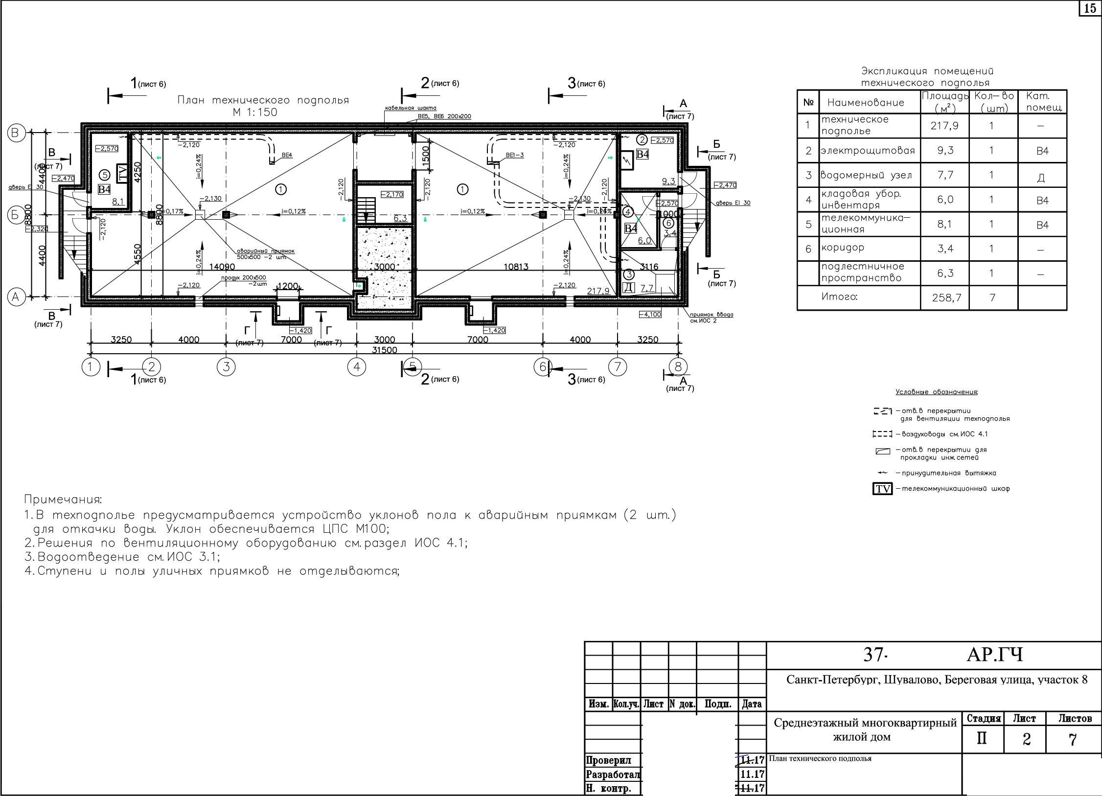 Инженерные помещения отделяются от подвала капитальными стенами и имеют самостоятельные входы-выходы.