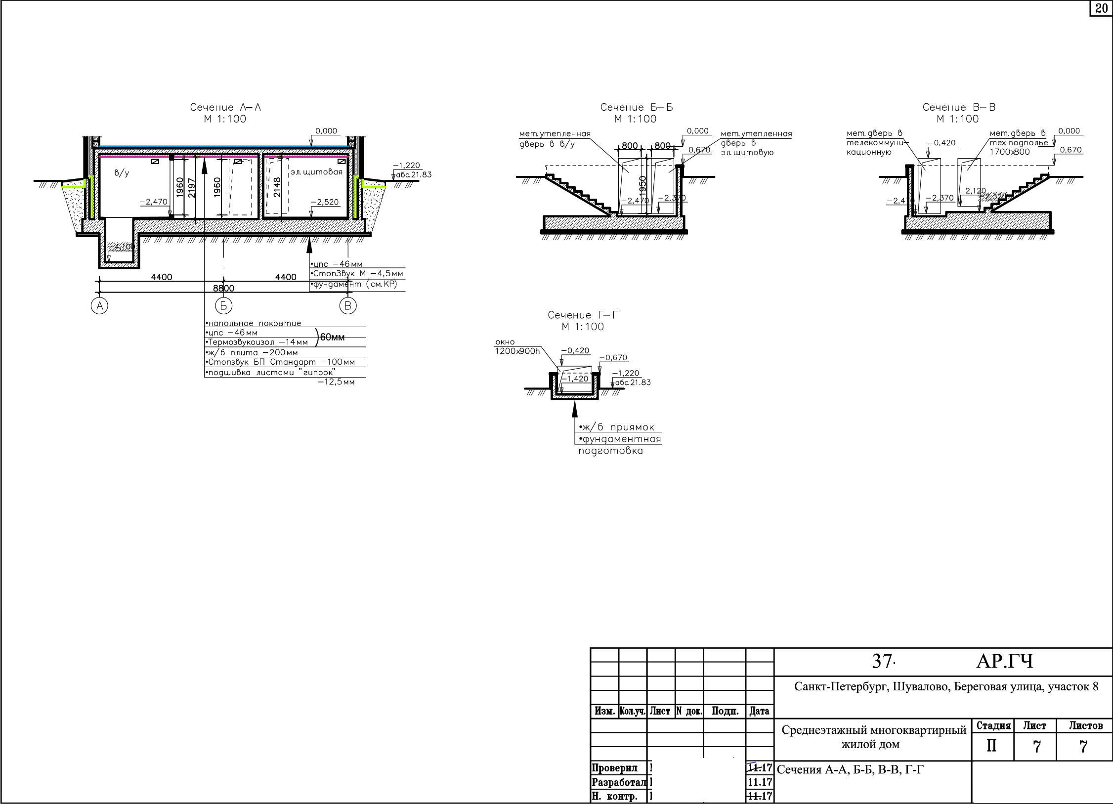 Ниже отм. 0.000 запроектирован подвал высотой 2.0 м: