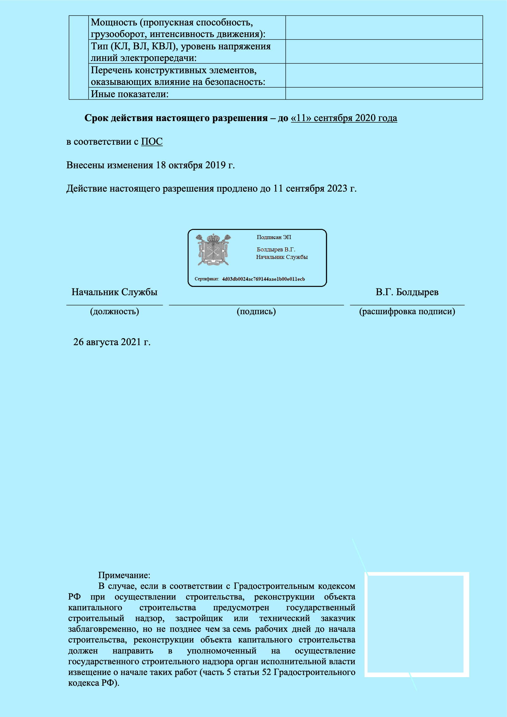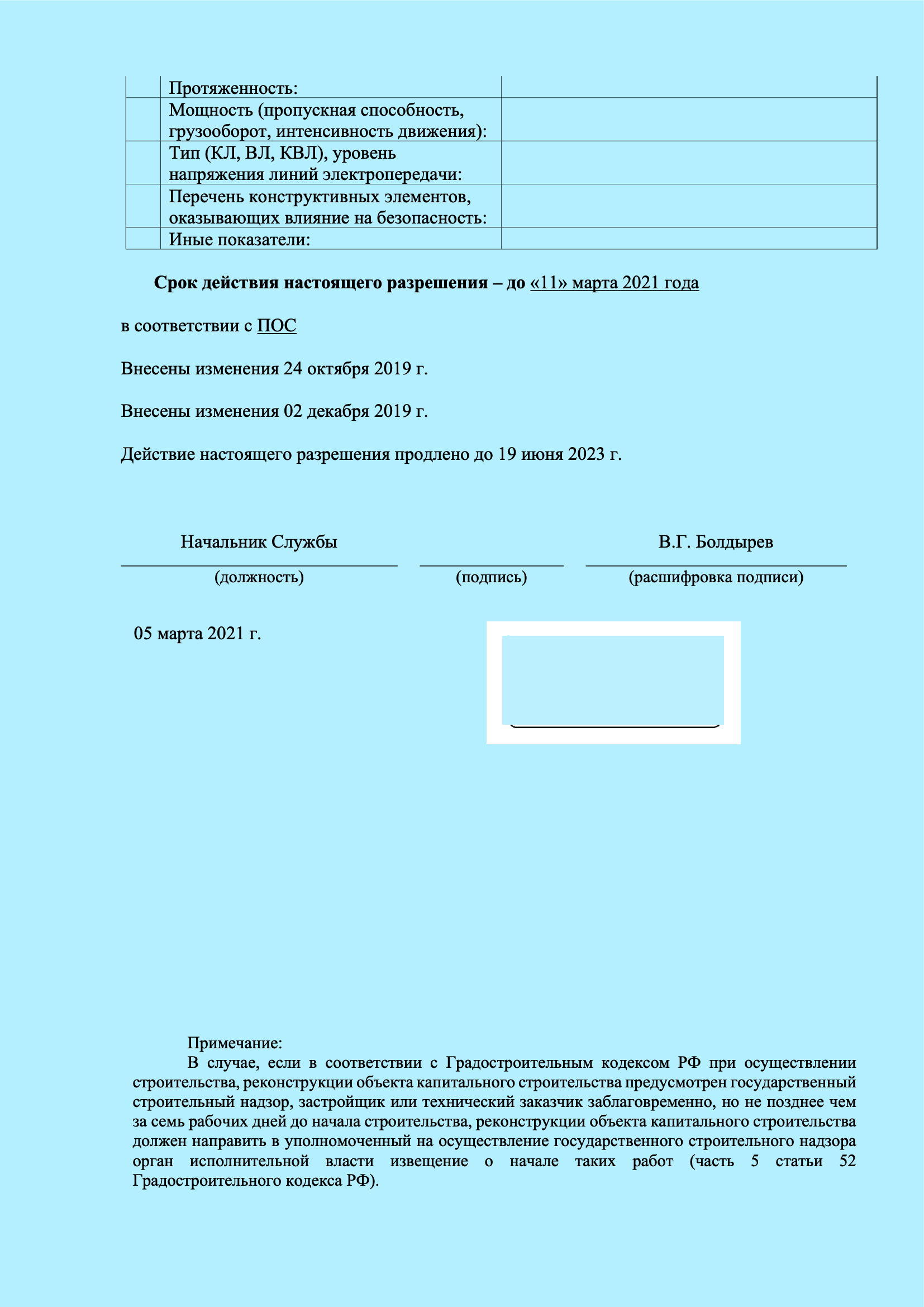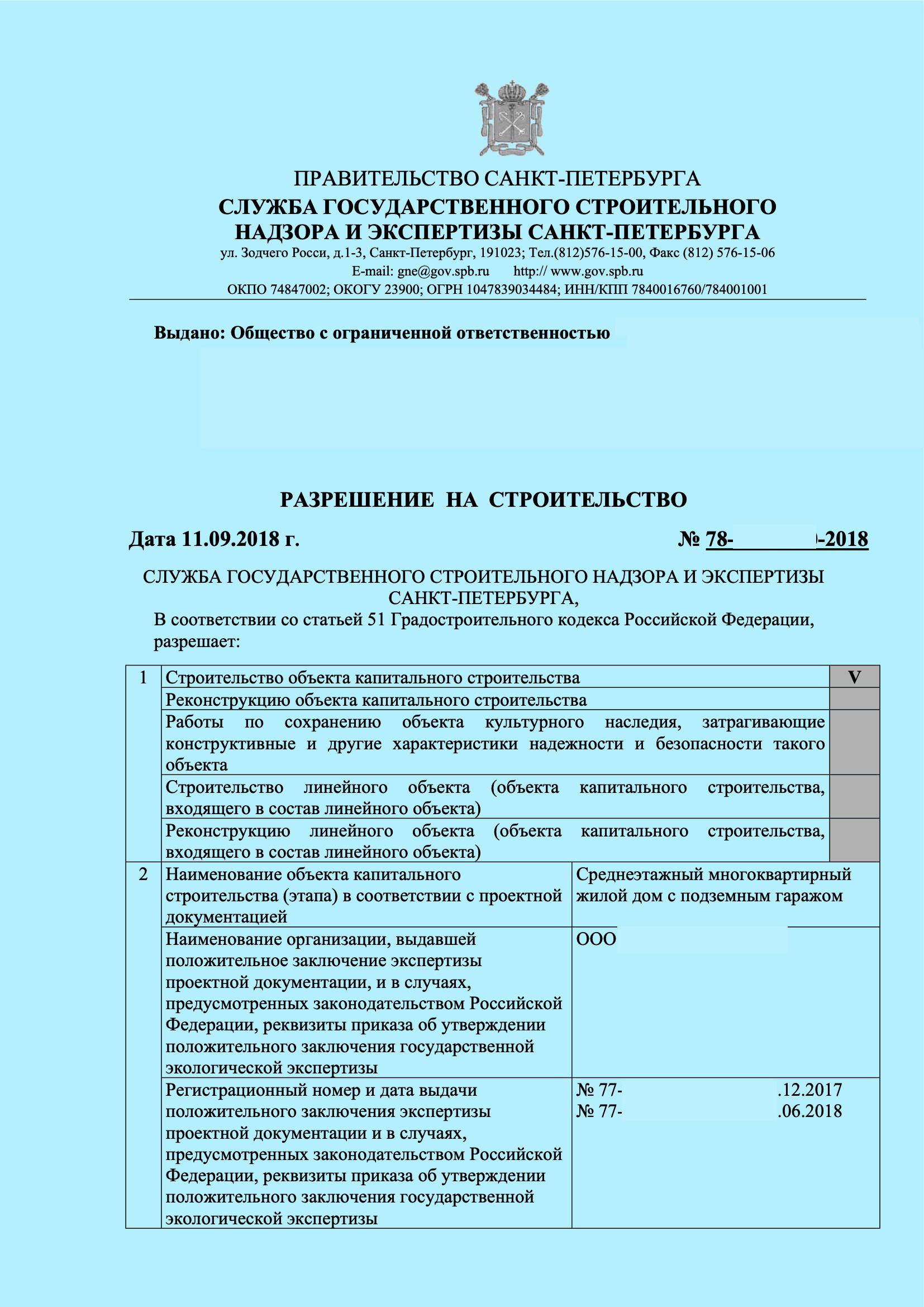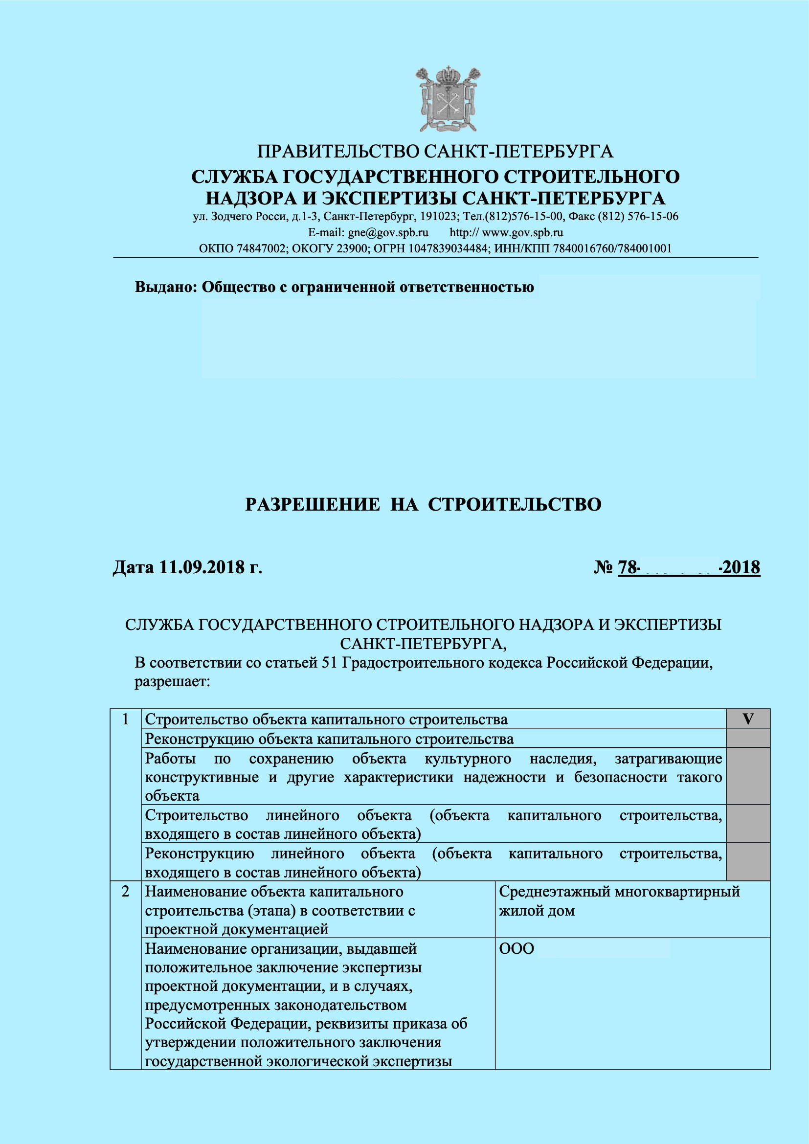 Разрешение на строительство: