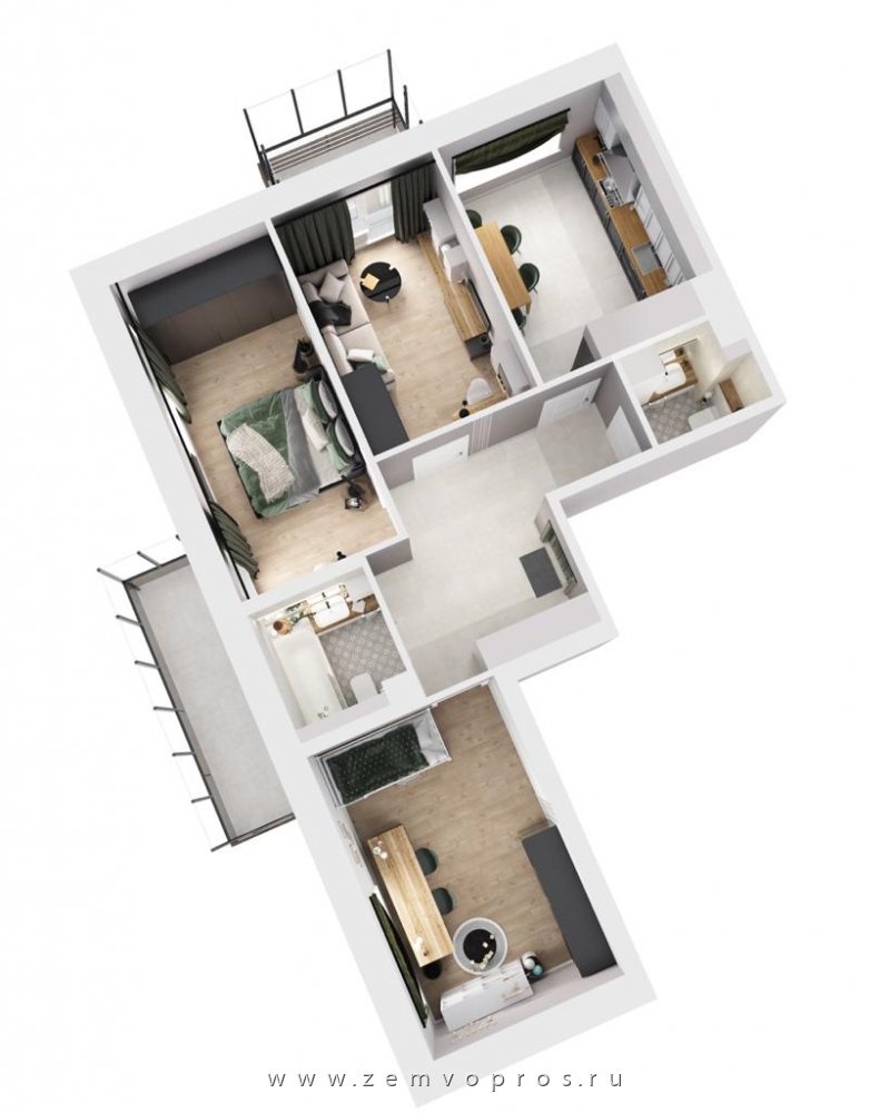 - остеклённые балконы по всем сторонам