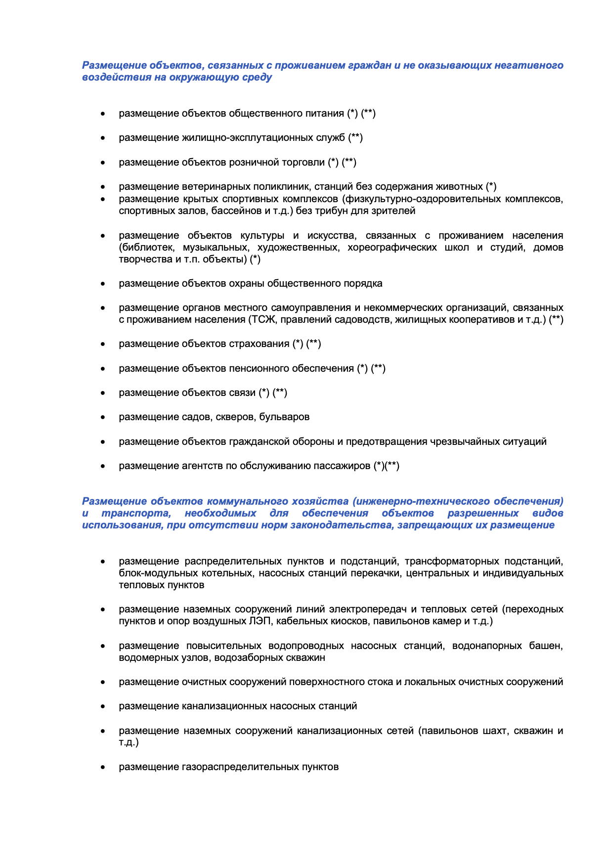 В числе основных и условно разрешённых видов использования – размещение объектов различного назначения: