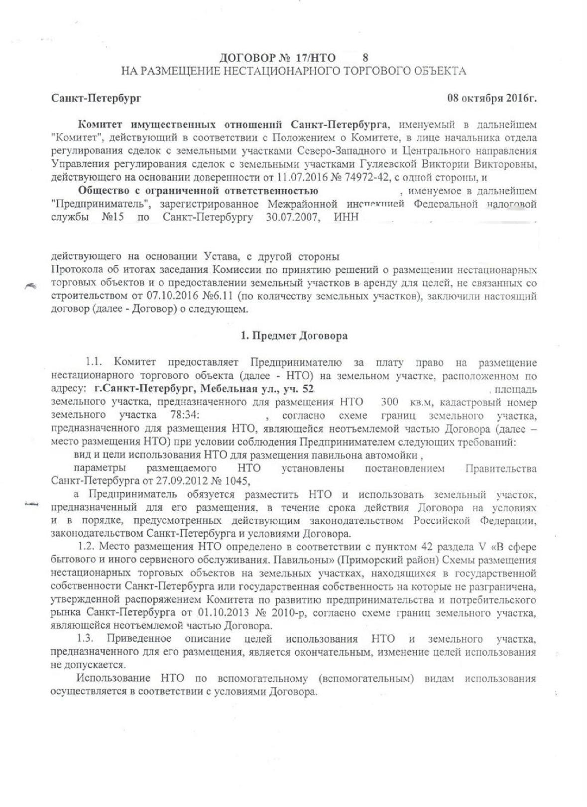 - договор аренды, заключённый с КИО Санкт-Петербурга для целей, не связанных со строительством