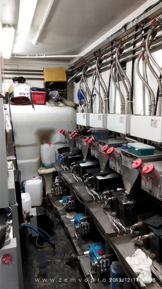 - одноконтурный котёл для подогрева воды через систему бойлеров для мойки, работающий постоянно – мощность 95 кВт