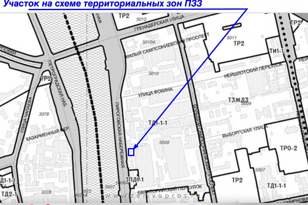 Участок со зданиями в зоне ТД 1-1, с ГПЗУ, на Пироговской набережной