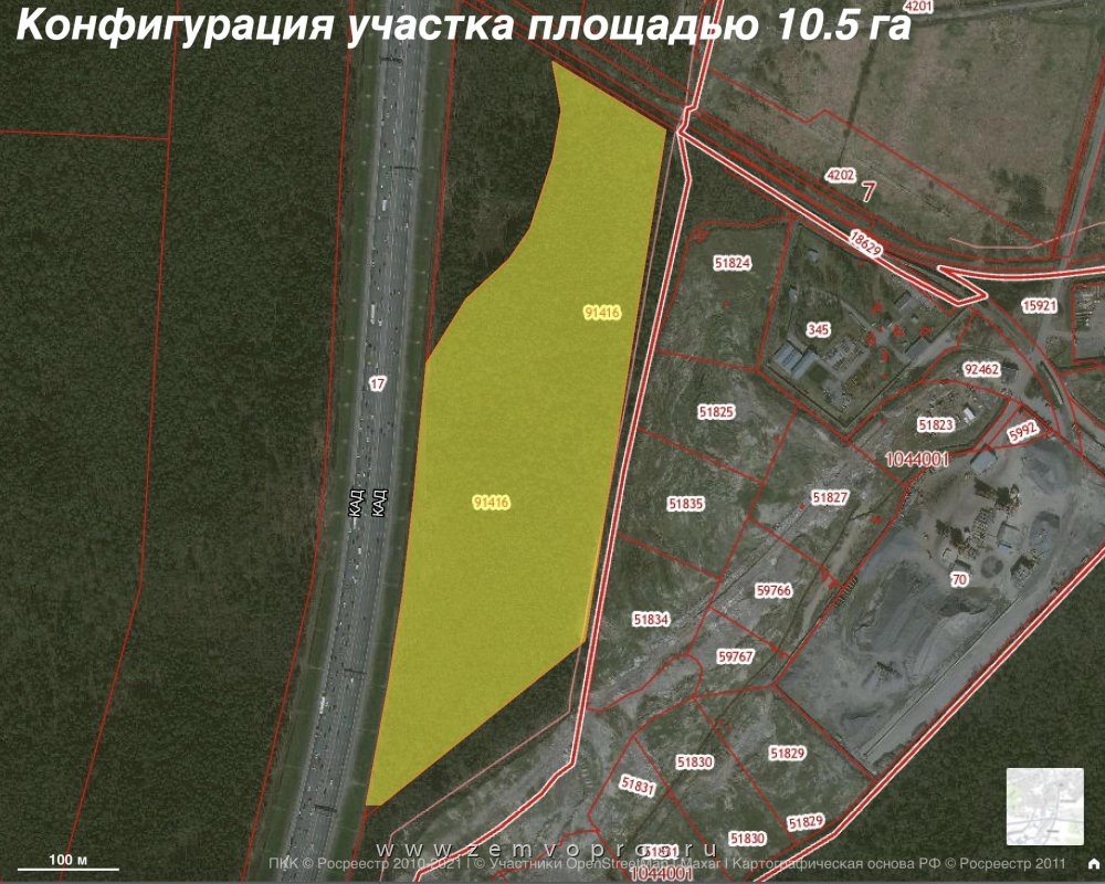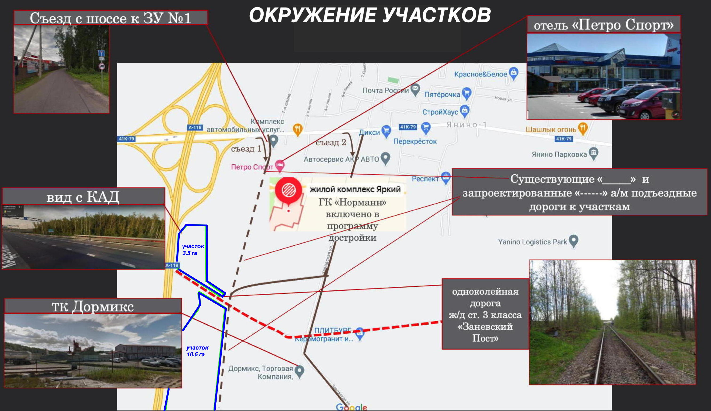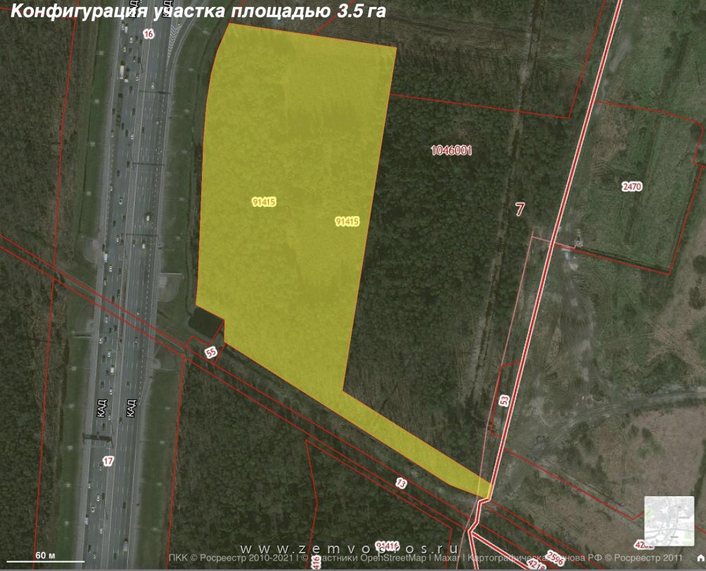Два земельных участка площадью 3.5 га и 10.5 га под объекты коммерции на 1 линии КАД у съезда с Колтушского шоссе в Янино -1