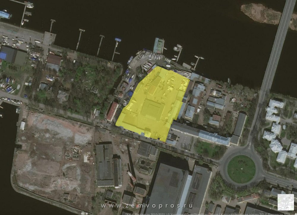 Участок со зданиями под строительство элитного жилого комплекса или деловую застройку на Петровском острове