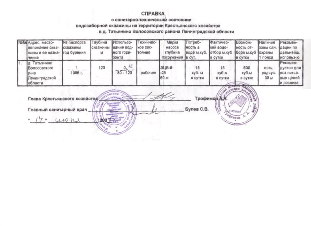 - целевое назначение и виды работ – добыча подземных вод для хозяйственного-питьевого водоснабжения хозяйства и целей розлива в объёме до 15 м3/сут.