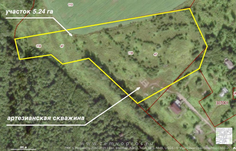 Земельный участок площадью 5.24 га для фермерского хозяйствования, сенокошения с артезианской скважиной, расположенный на границе деревни Татьянино.