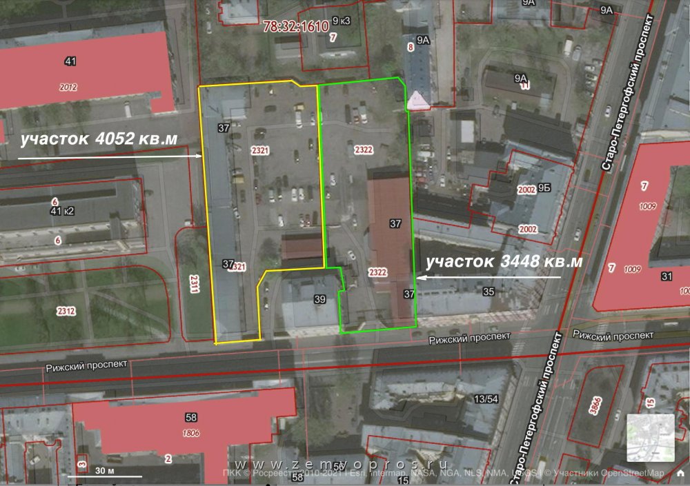Два смежных участка с ГПЗУ под гостиницу и жилой дом на Рижском проспекте