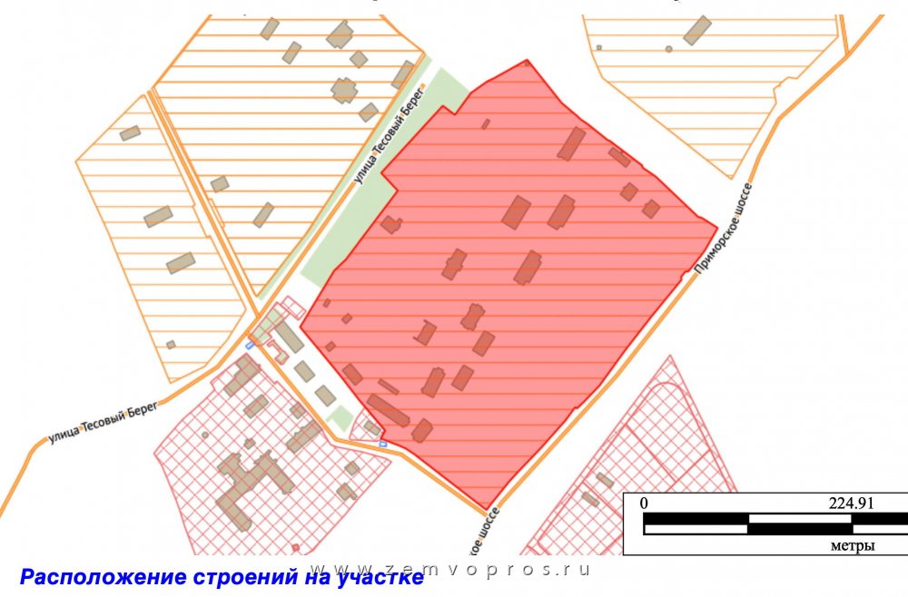 Земельный участок площадью 11.7 га под размещение санатория на Приморском шоссе в посёлке Смолячково.