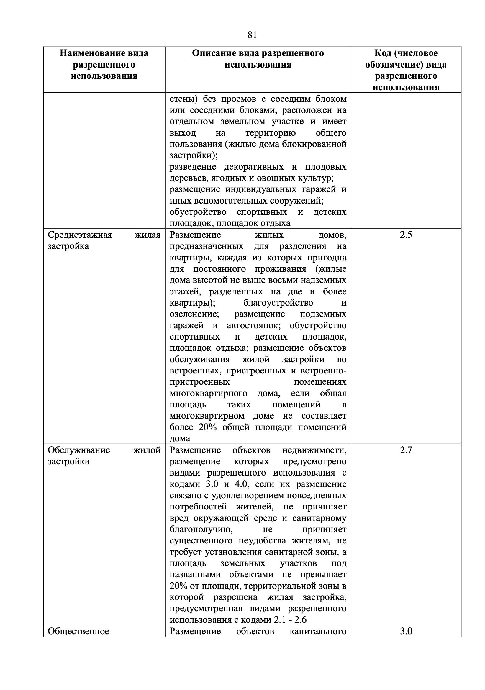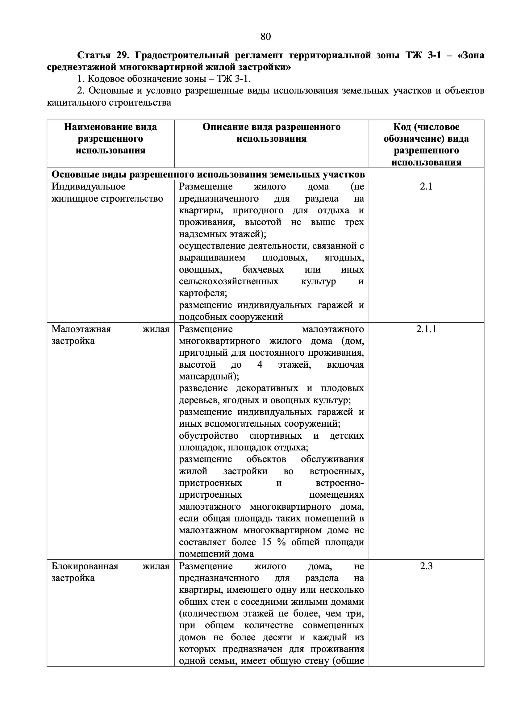 Основных ВРИ ЗУ для зоны ТЖ3-1