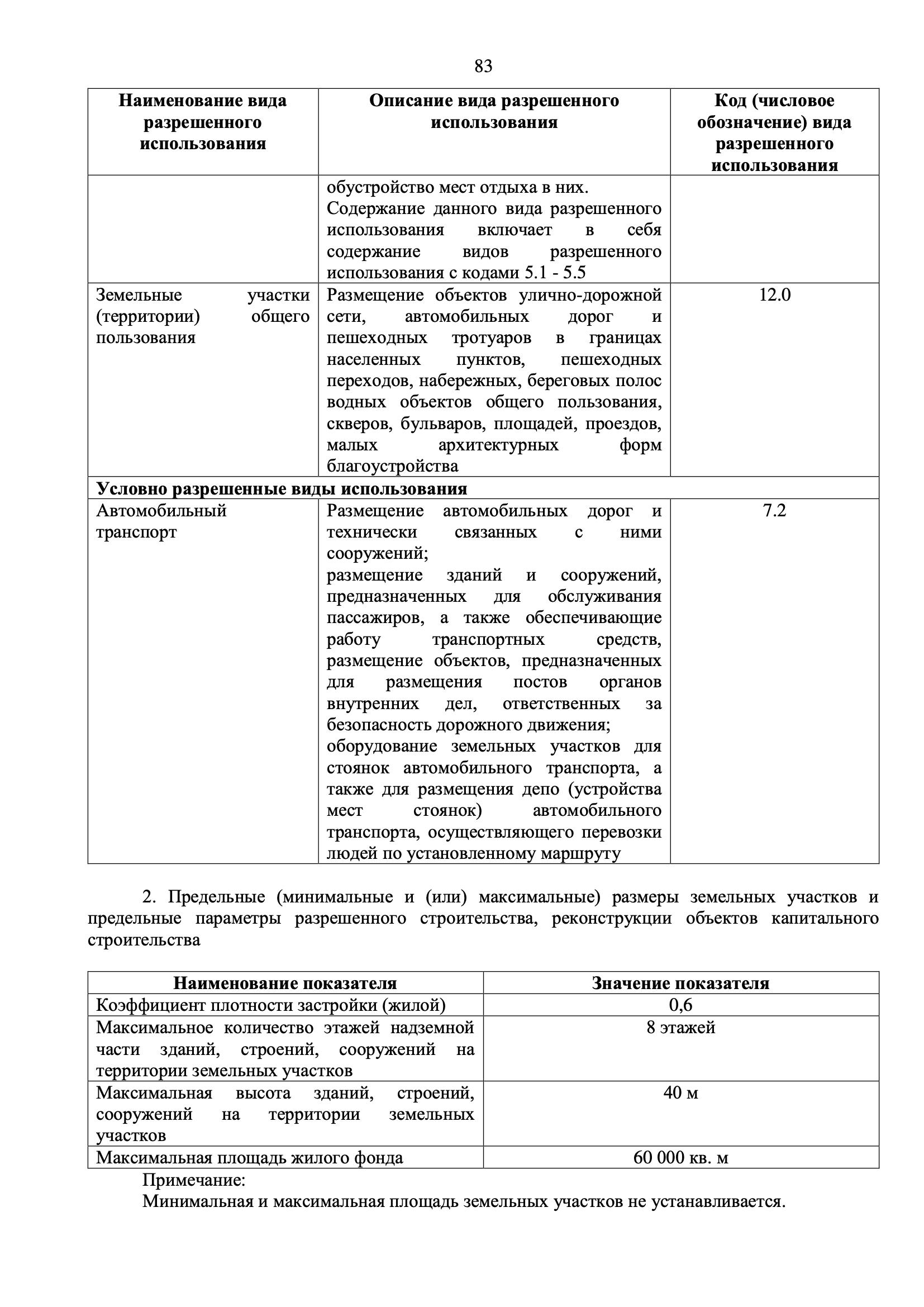 - максимальная высота зданий/строений/сооружений на территории ЗУ – 40 м