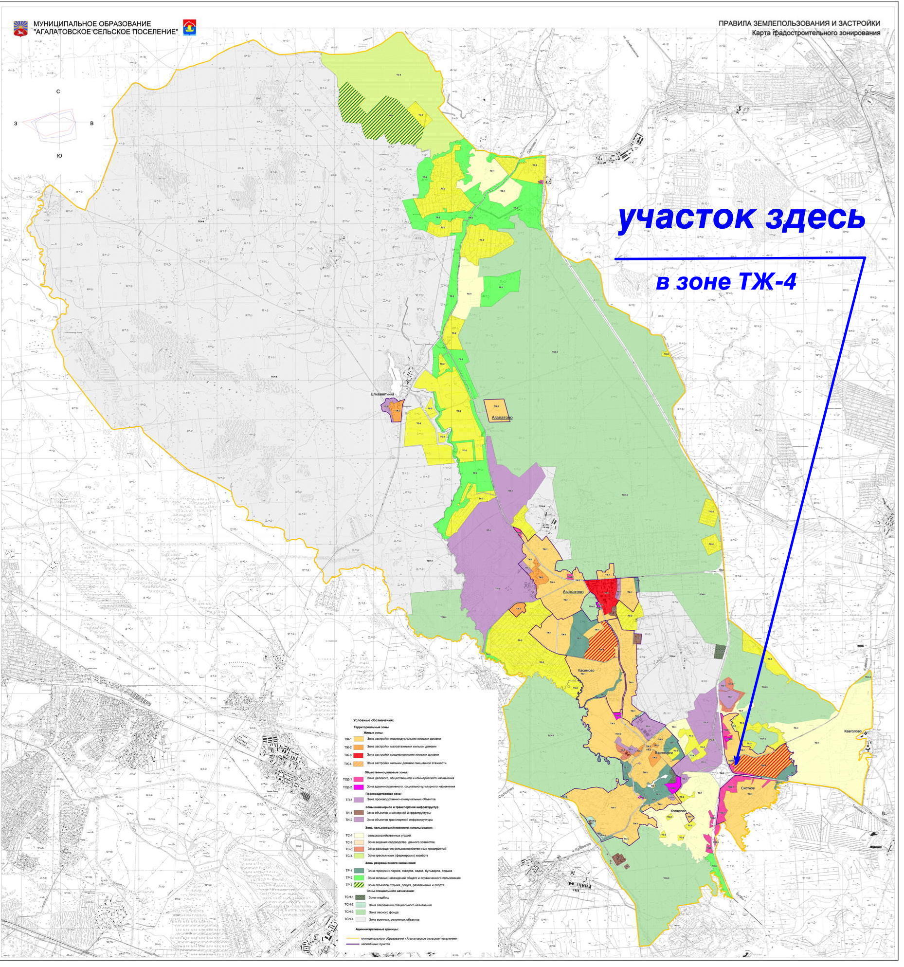 В соответствии с ПЗЗ Агалатовского СП земельный участок расположен в границах зоны застройки жилыми домами смешанной этажности – ТЖ-4