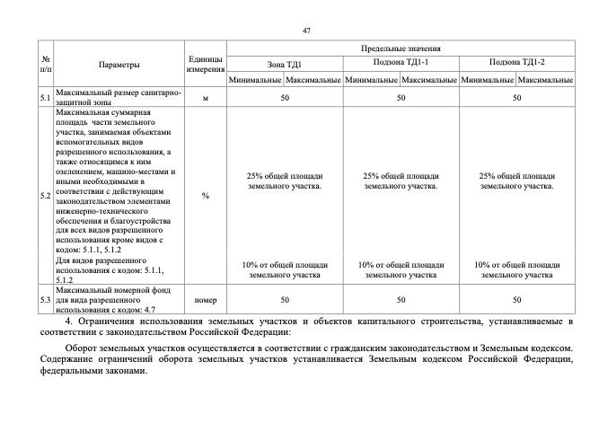 Использование земельного участка под размещение объектов, разрешённых градостроительным регламентом территориальной зоны ТД-1 возможно при условии изменения существующего ВРИ ЗУ на соответствующий вид.