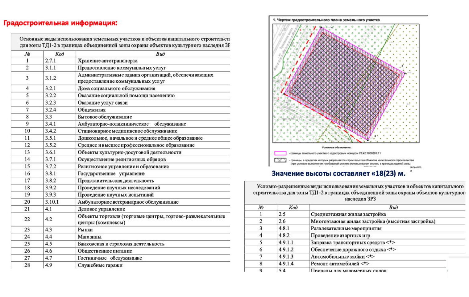 - высотный регламент – 18(23) м