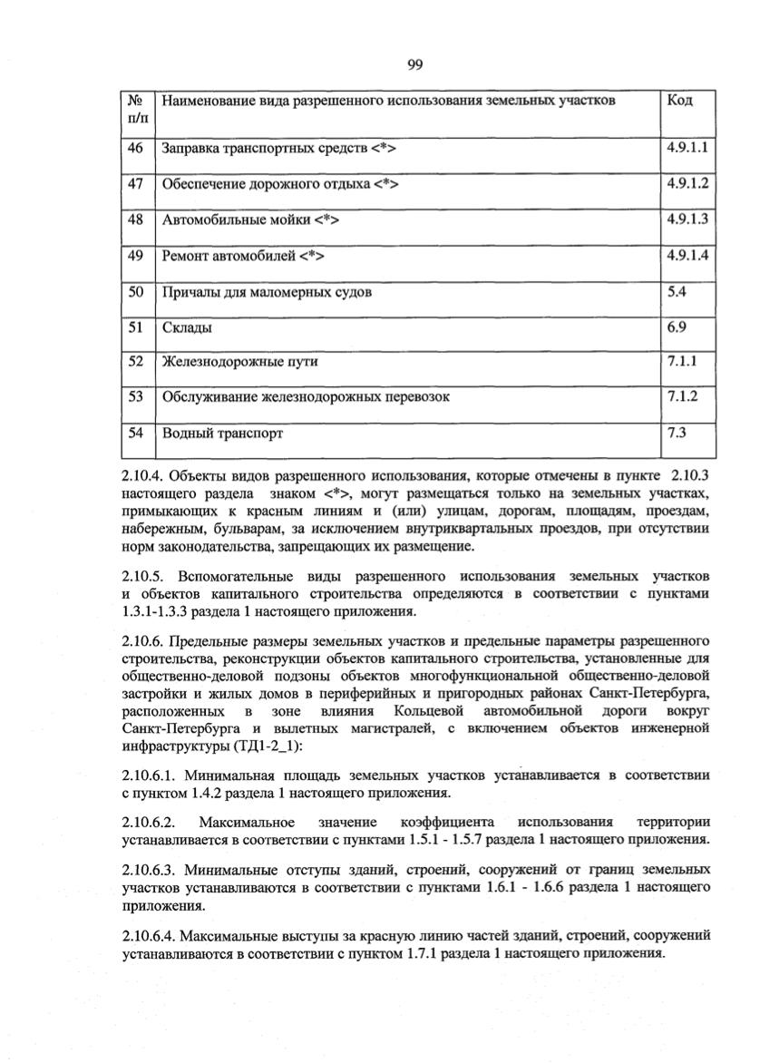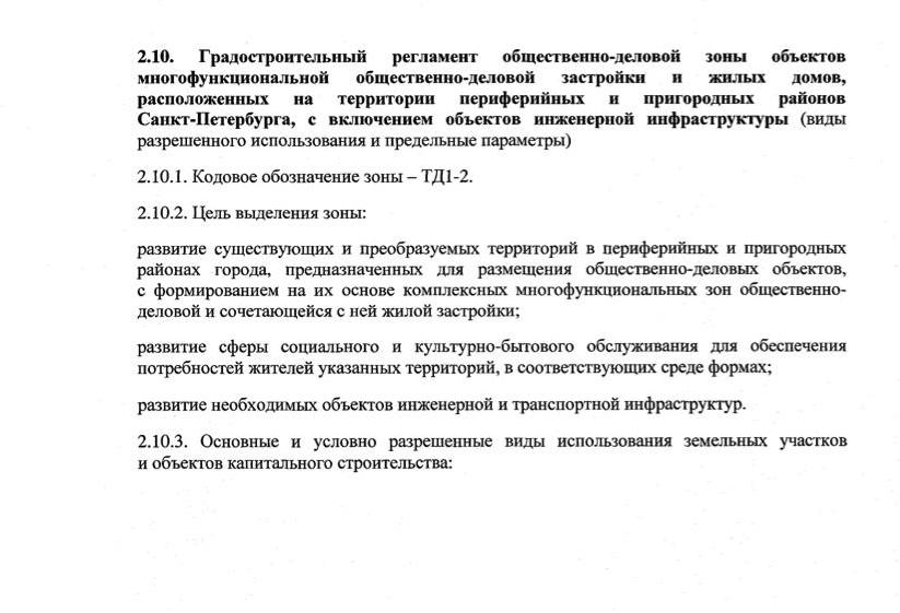 - общественно-деловая подзона объектов многофункциональной общественно-деловой застройки и жилых домов в периферийных и пригородных районах Санкт-Петербурга, расположенных в зоне влияния КАД вокруг Санкт-Петербурга и вылетных магистралей с включением объектов инженерной инфраструктуры