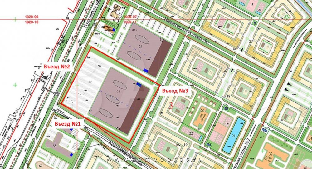 Участок на пересечении Кокколевской улицы и Пулковского шоссе в территориальной зоне ТД1-2